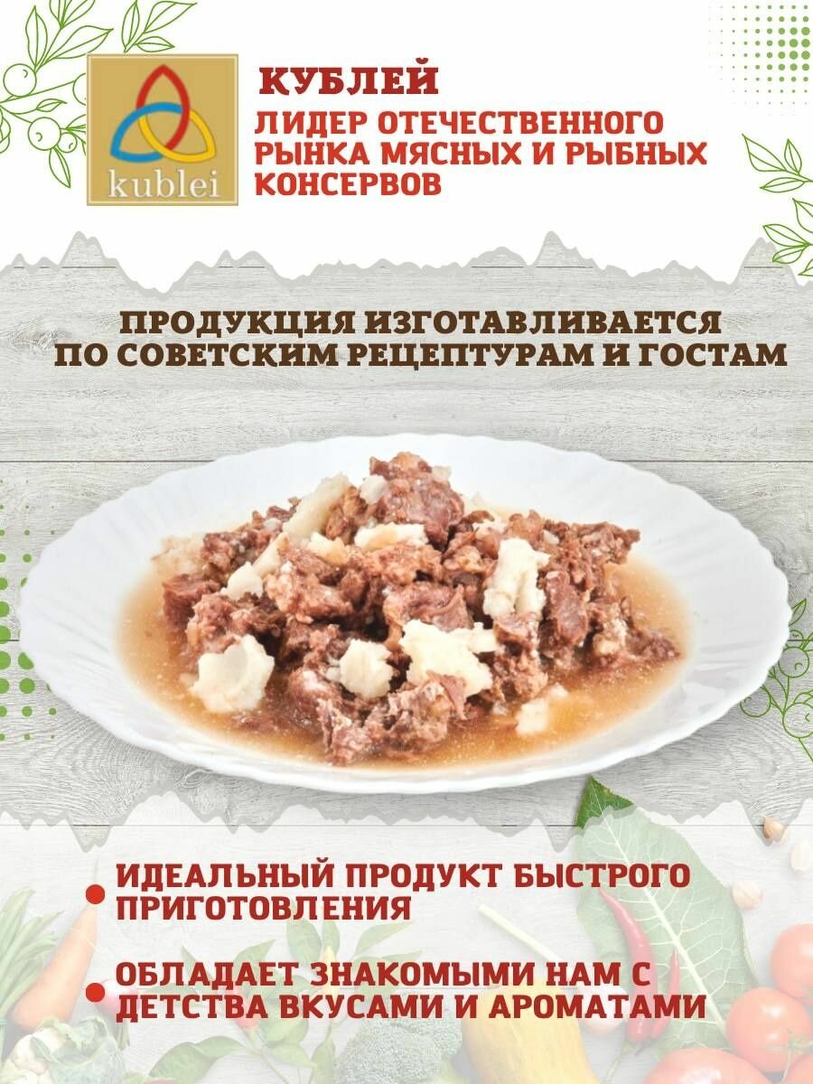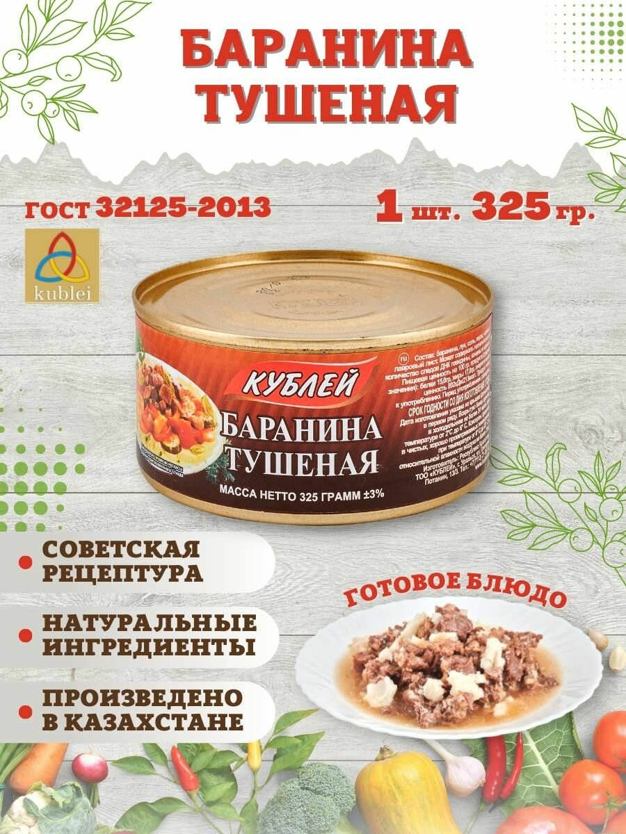 Мясные консервы тушенка "Кублей" готовое блюдо: Баранина тушеная, 1 шт. 325 грамм интересное: