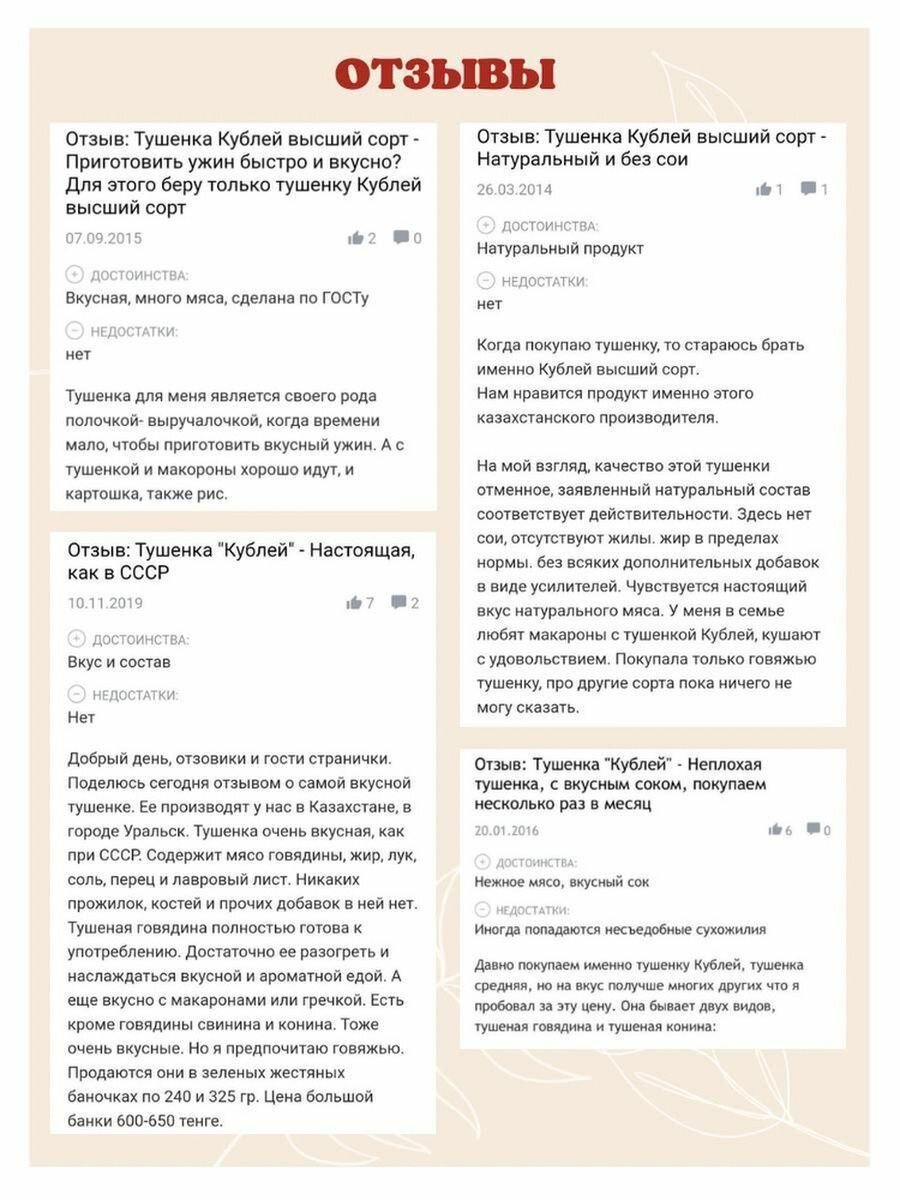 Ниже Вы можете прочитать отзывы на Мясные консервы тушенка "Кублей" готовое блюдо: Баранина тушеная, 1 шт. 325 грамм, ознакомится с подробными характеристиками, посмотреть интересные обзоры и фотографии на Мясные консервы тушенка "Кублей" готовое блюдо: Баранина тушеная, 1 шт. 325 грамм.
