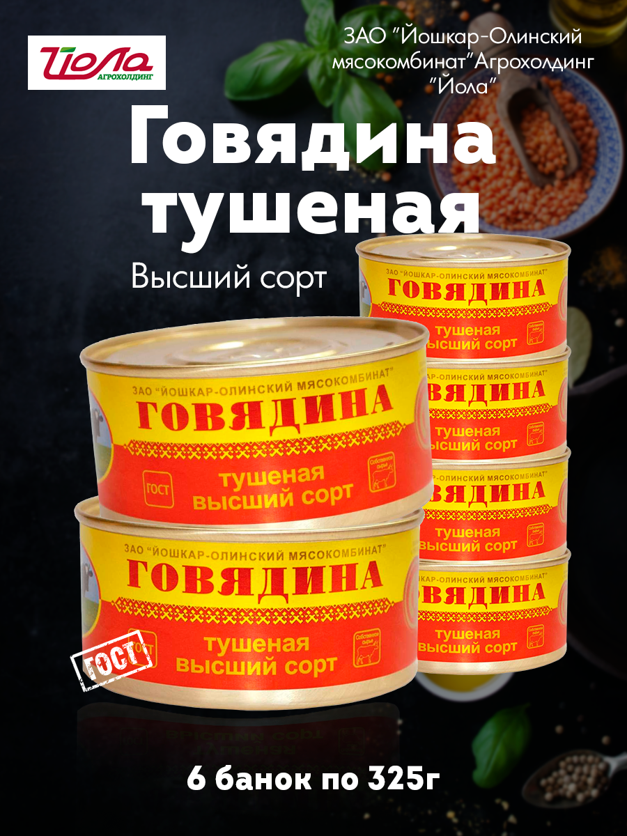 Говядина тушеная Йошкар-Ола высший сорт ГОСТ, набор 6 шт. по 325 г интересное:
