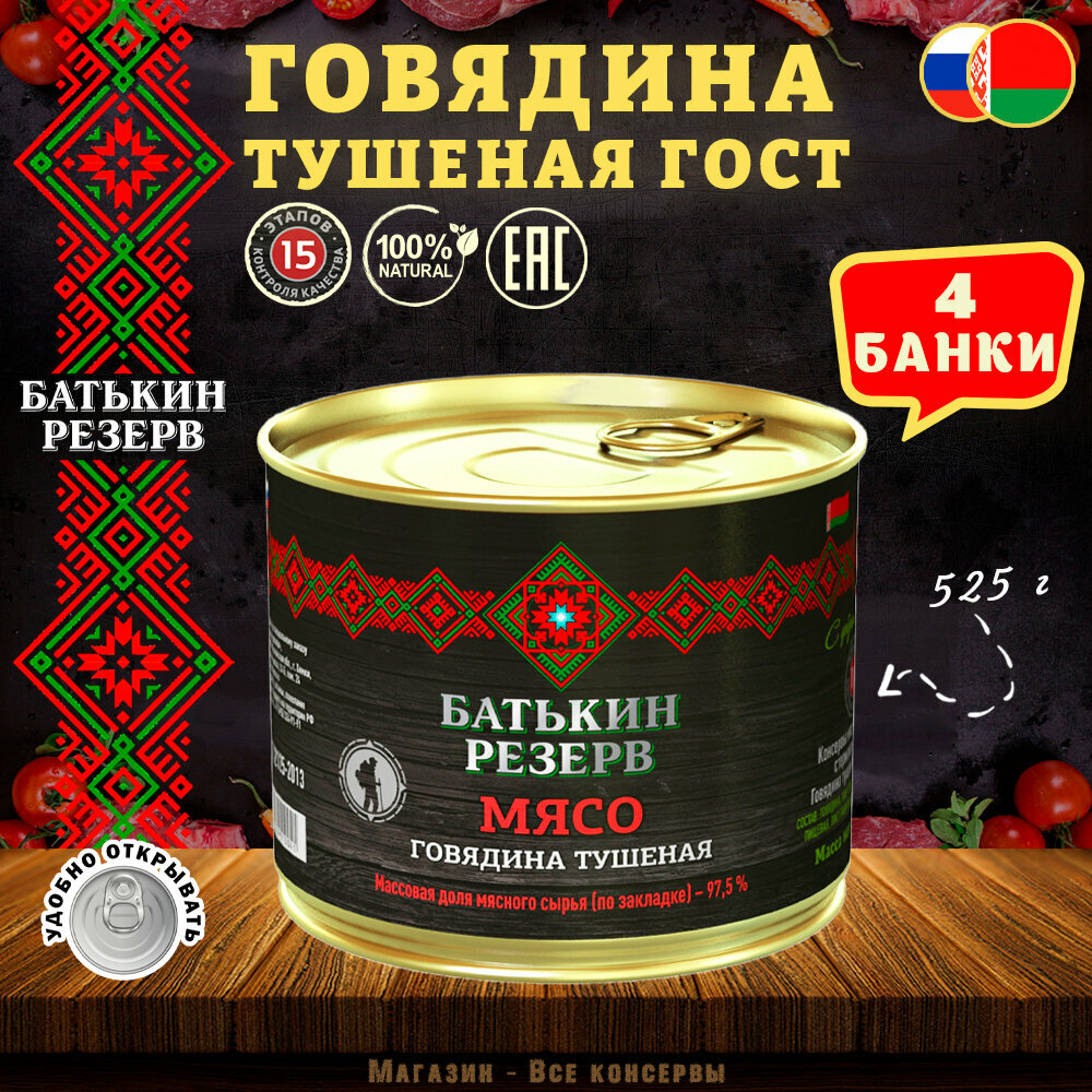 Говядина тушеная, Батькин резерв, ГОСТ, 4 шт. по 525 г интересное: