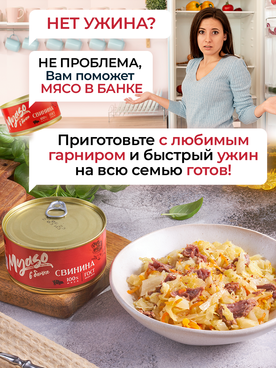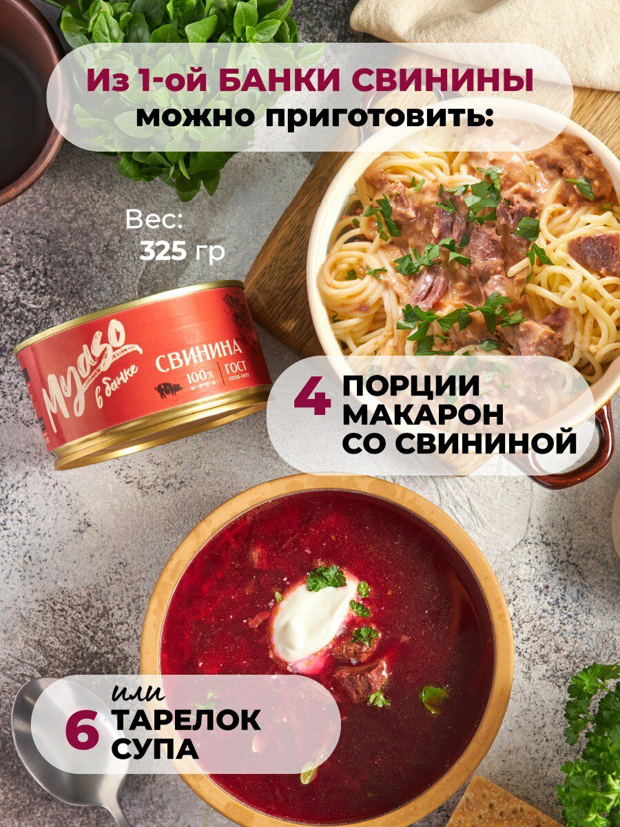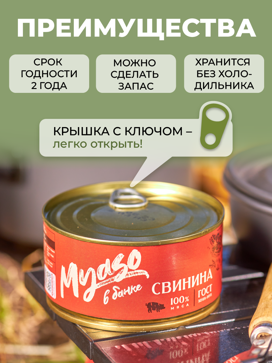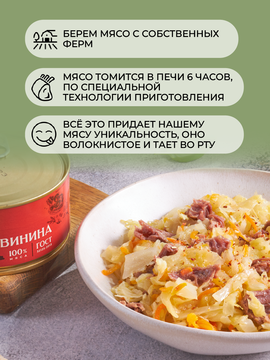 Тушенка, консервы мясные, свинина тушеная, свиная тушенка, ГОСТ, Томленая фермерская свинина высший сорт 325 гр. "Мясо в банке" - 12 шт интересное: