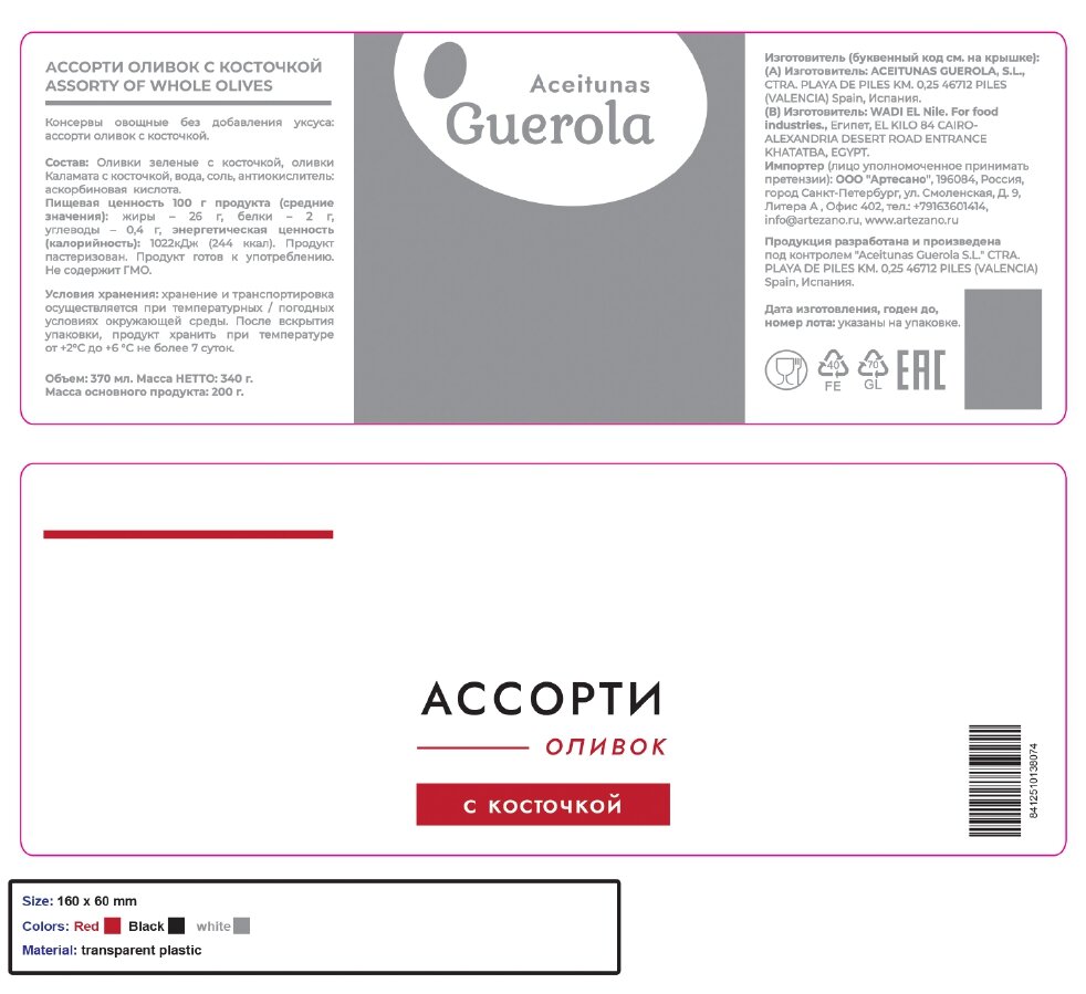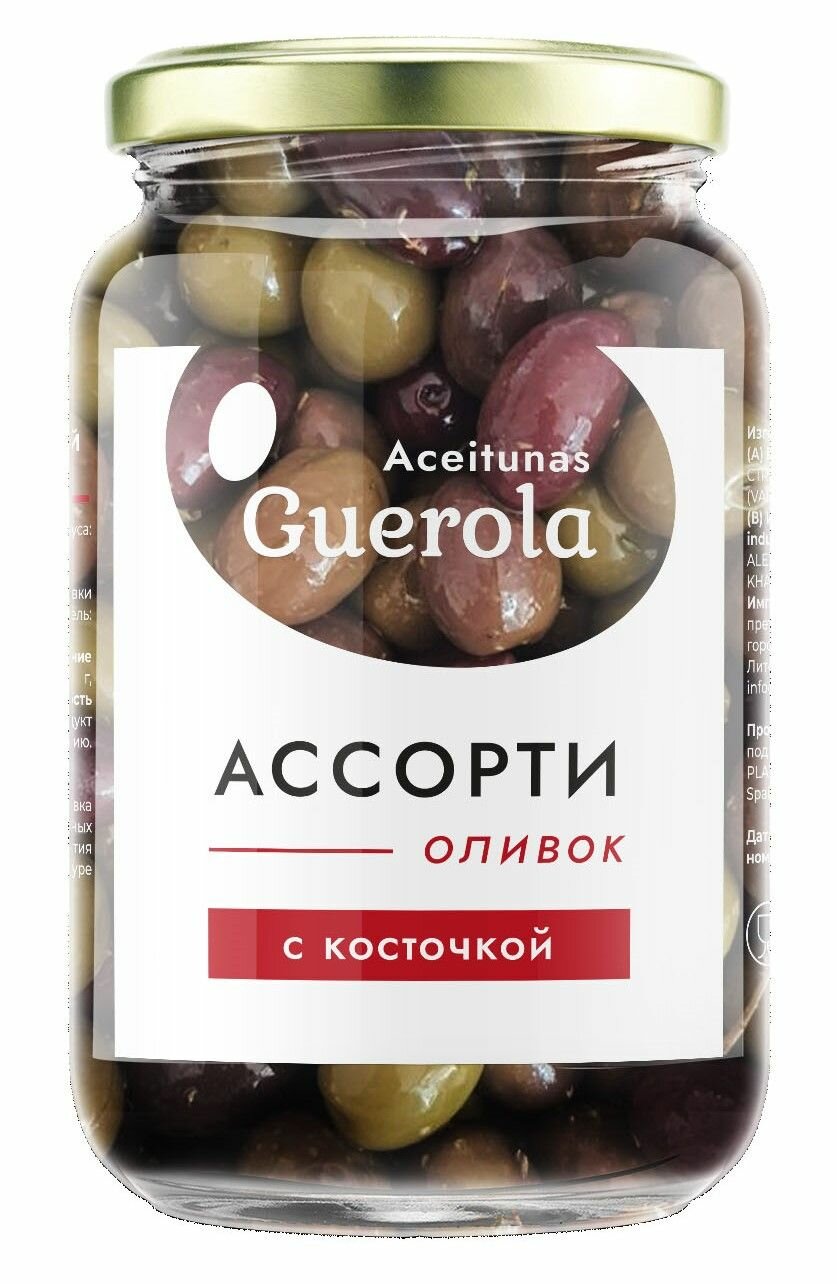 Оливки "Aceitunas Guerola" Ассорти с косточкой 340г/370мл интересное: