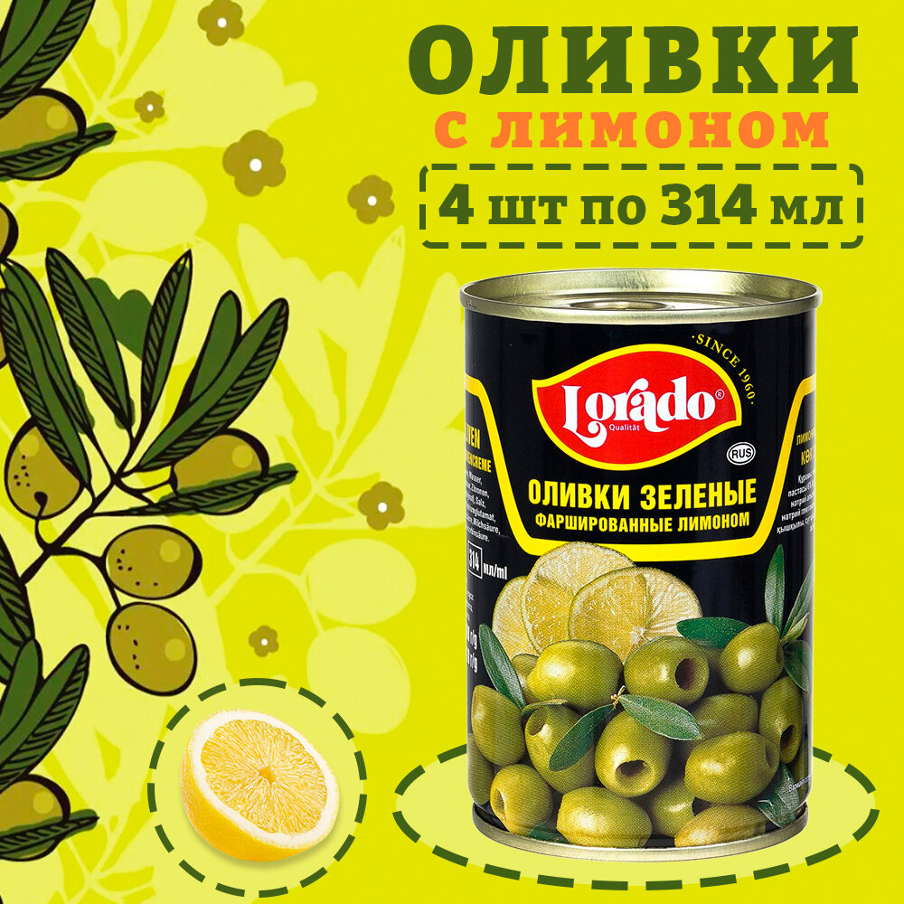 Оливки зеленые фаршированные лимоном, Lorado, 4 шт. по 314 мл интересное: