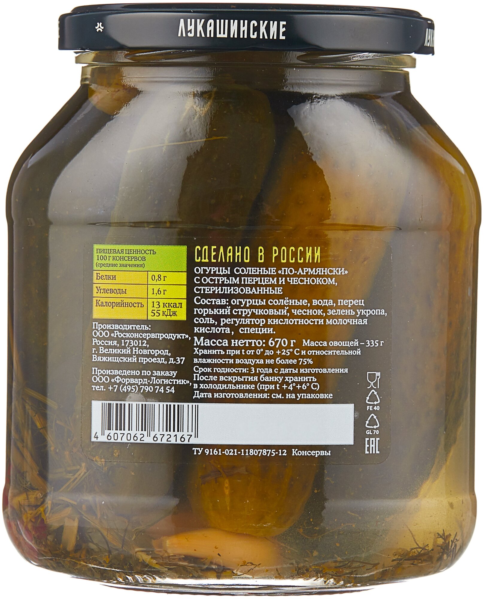 Купить Огурчики с острым перцем и чесноком по-армянски лукашинские, 670 г