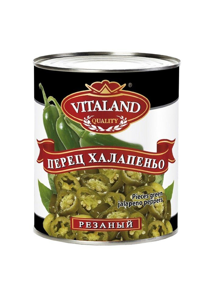 Зеленый перец халапеньо VITALAND резаный острый в рассоле, 3 л