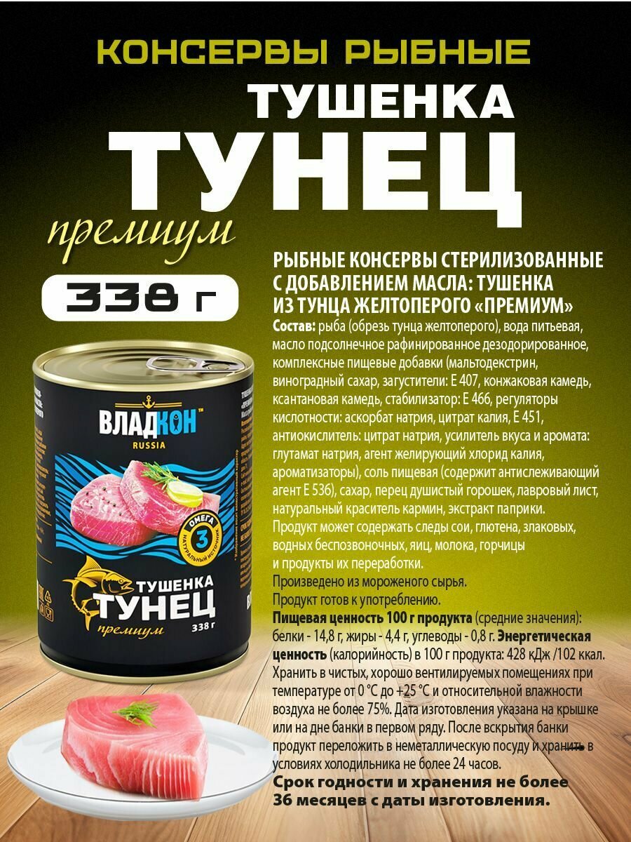 Тушёнка из тунца ТУ 338 гр. ГОСТ владкон - 4 шт. интересное: