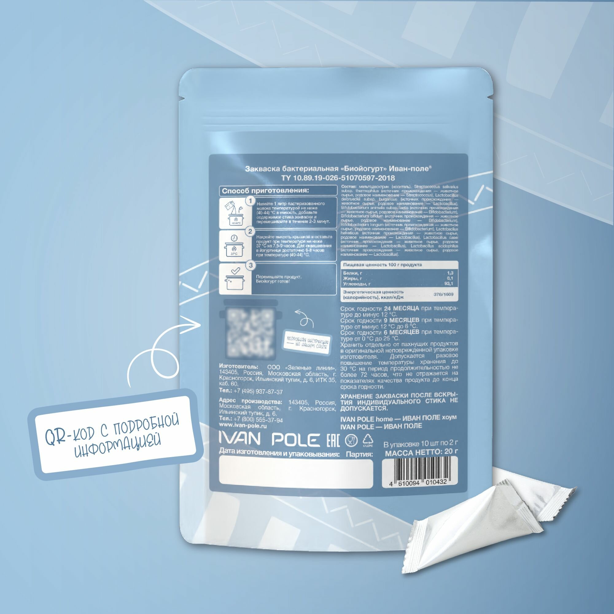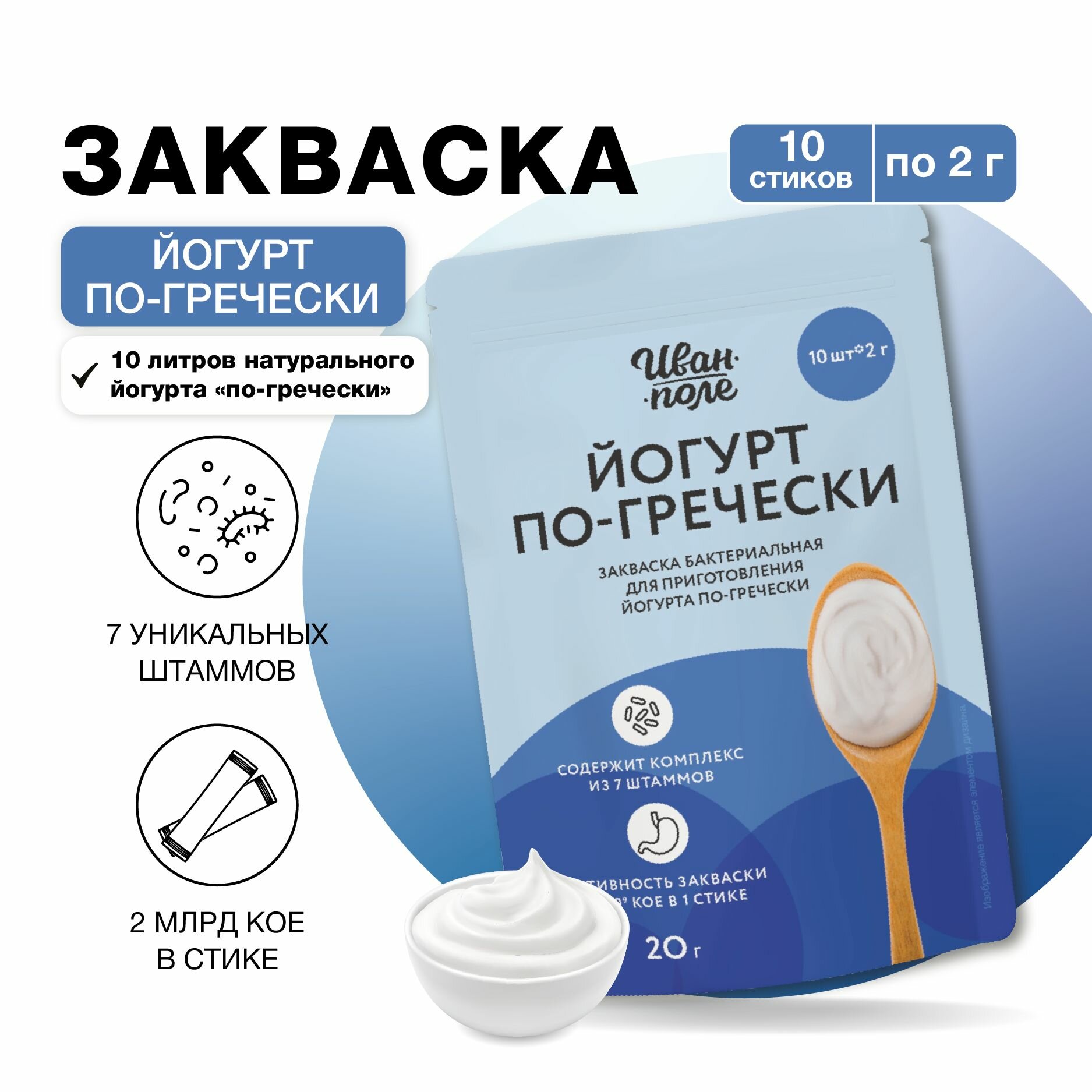 Закваска для Греческого йогурта и Биойогурта набор 2 шт. Иван-поле, 20 стиков по 2 г