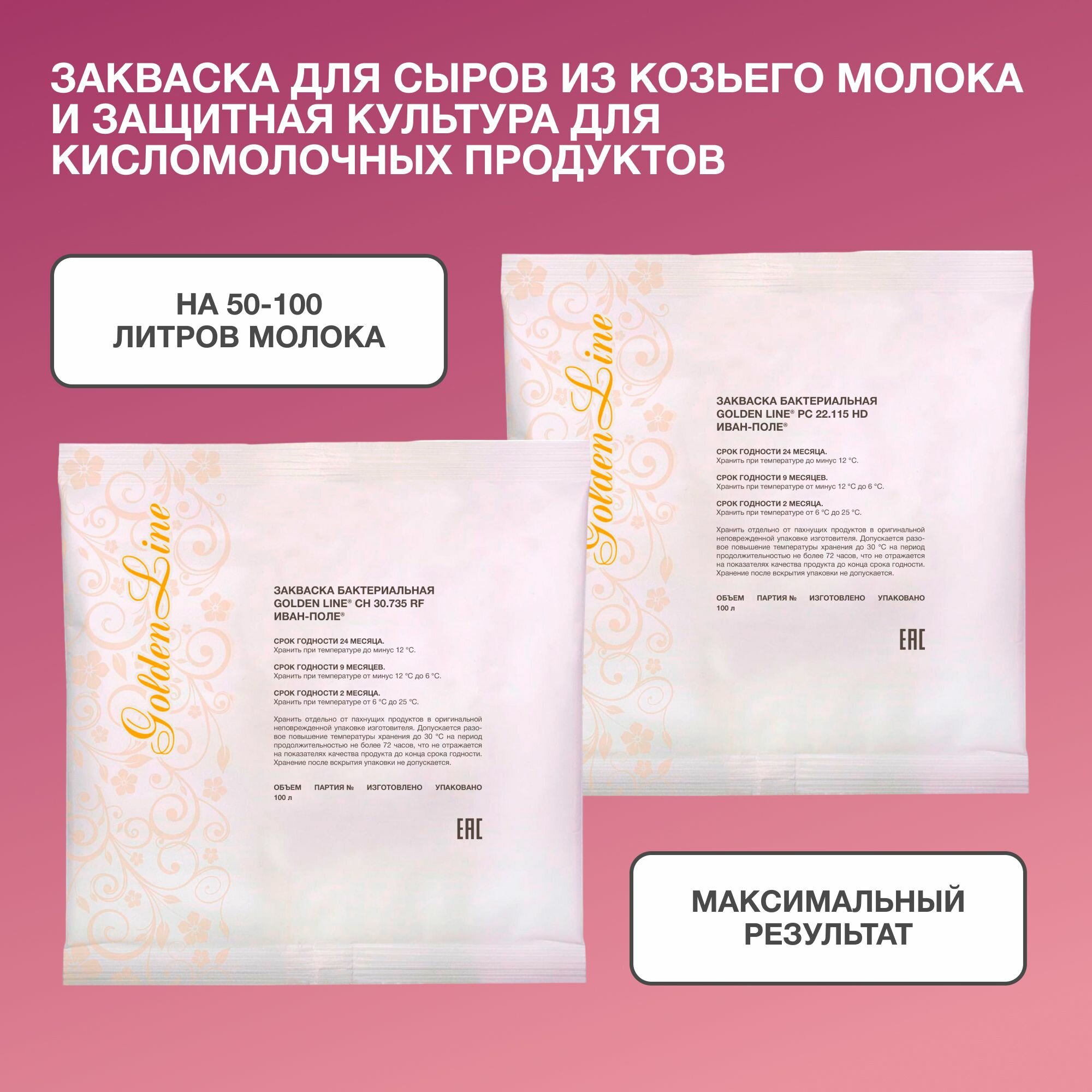 Набор Закваска для Козьего сыра и Защитная культура для Сыра Golden Line на 50 - 100 л, сухая бактериальная, Иван-поле интересное: