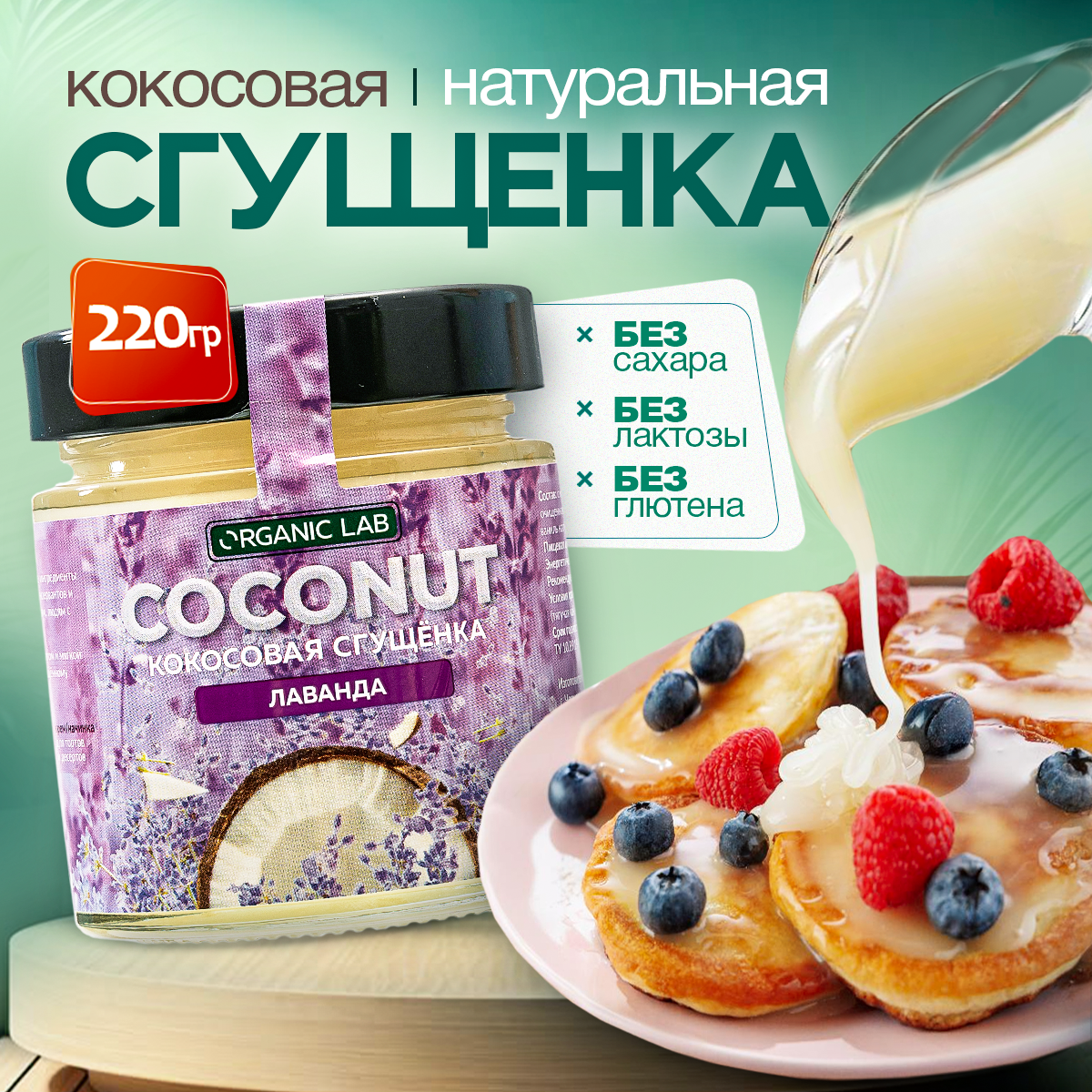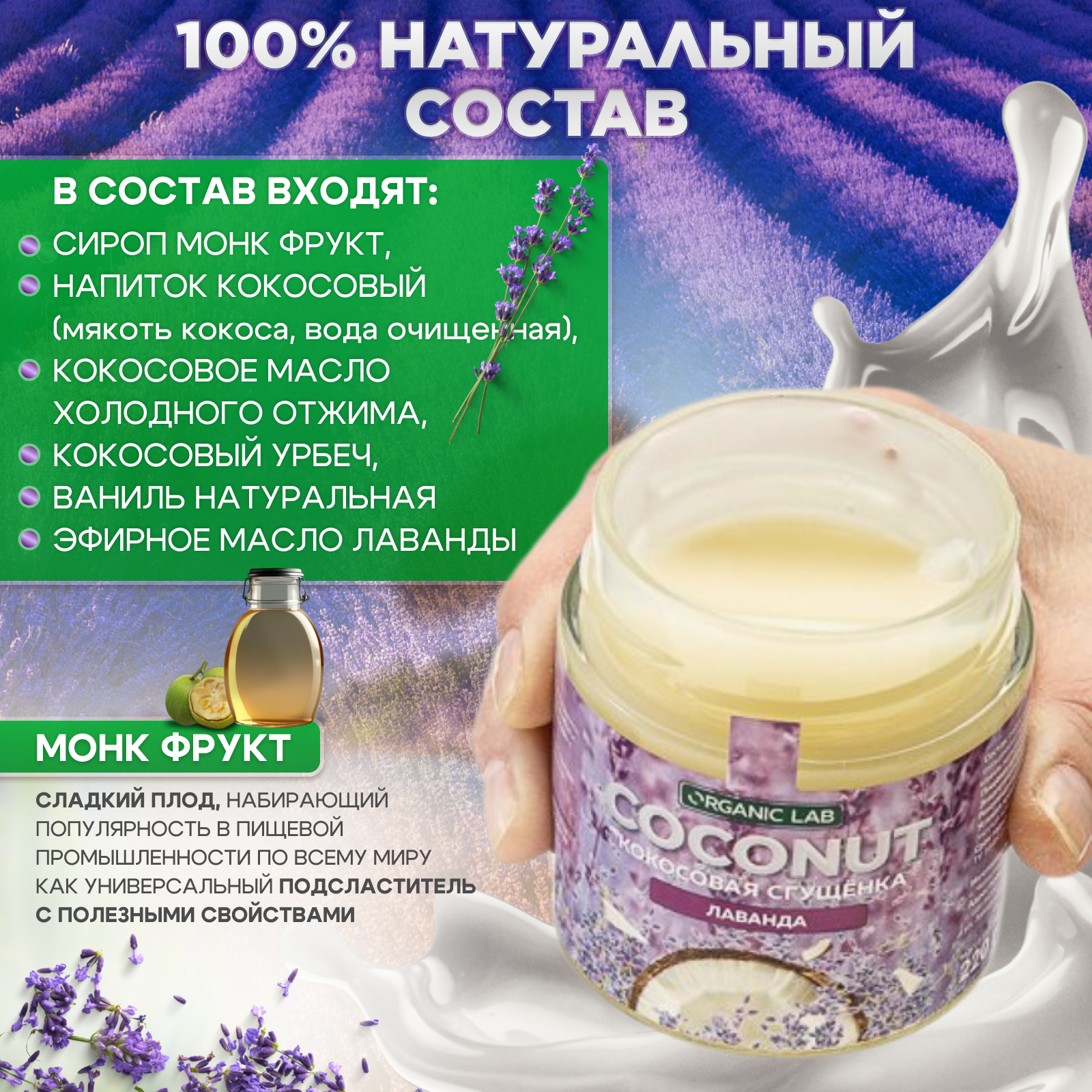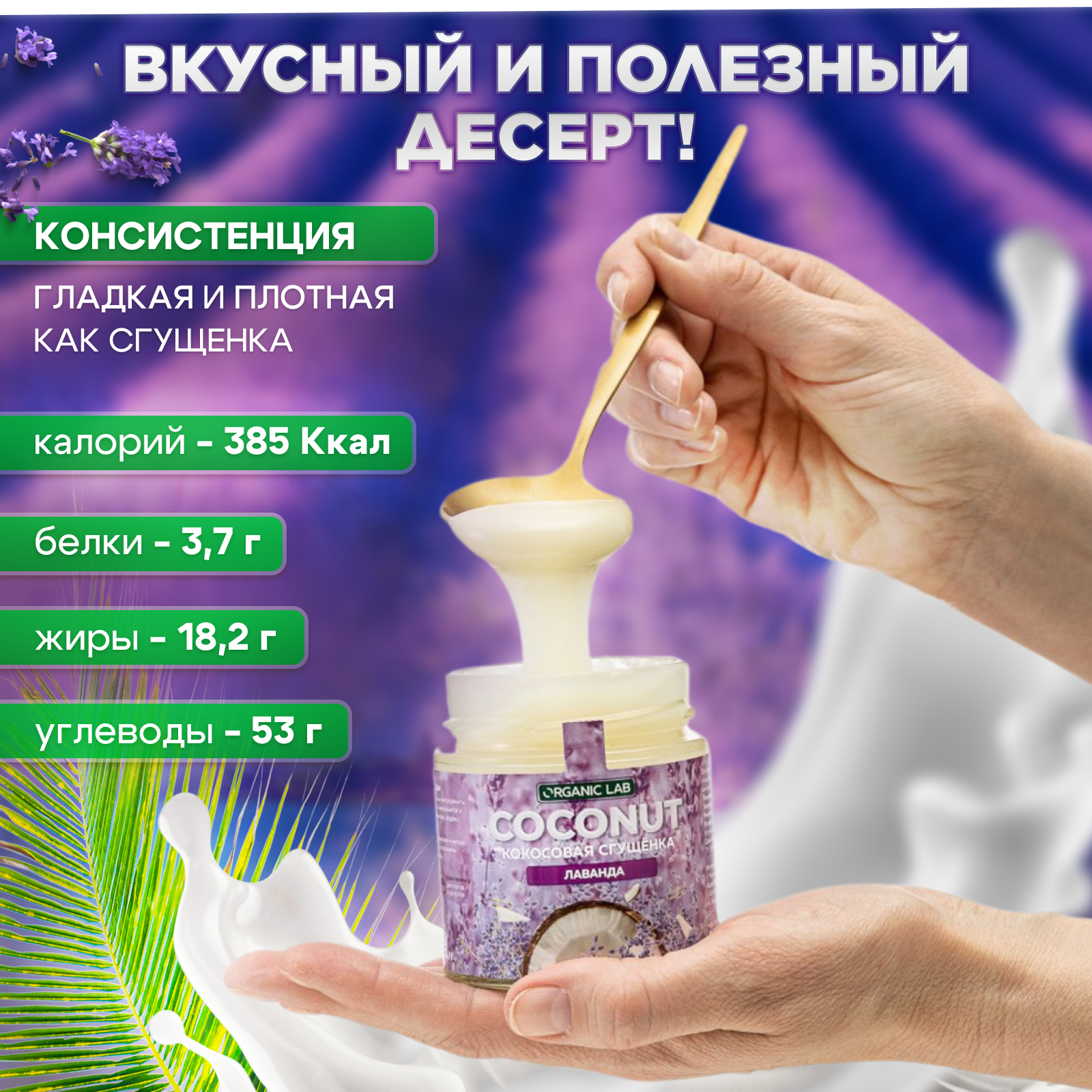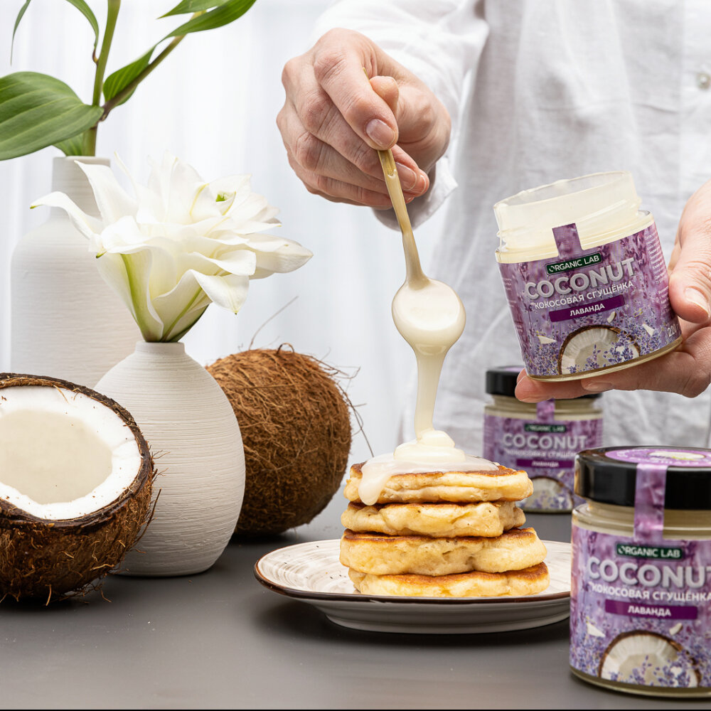 Кокосовая сгущенка ORGANIC LAB со вкусом лаванды, вегетарианский продукт из кокосового урбеча, без глютена и сахара, 220 гр. интересное: