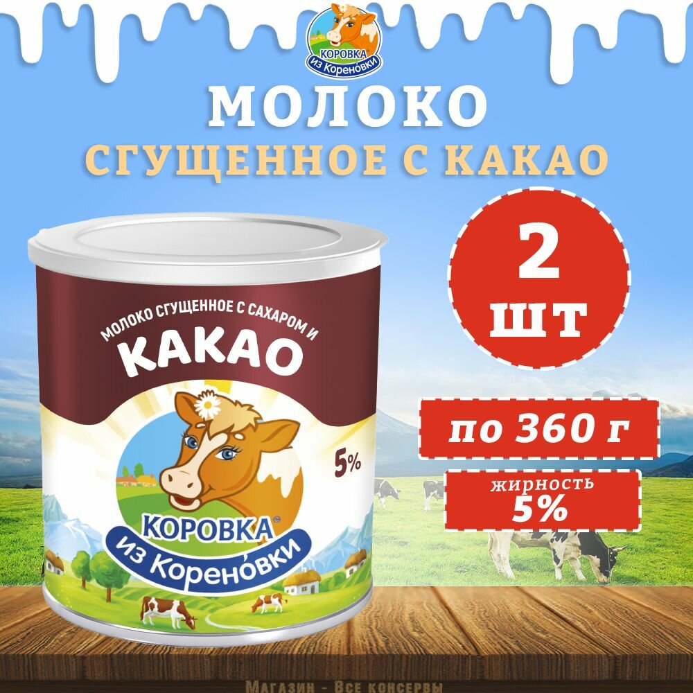 Купить Молоко сгущенное с сахаром и какао 5%, КизК, 2 шт. по 360 г