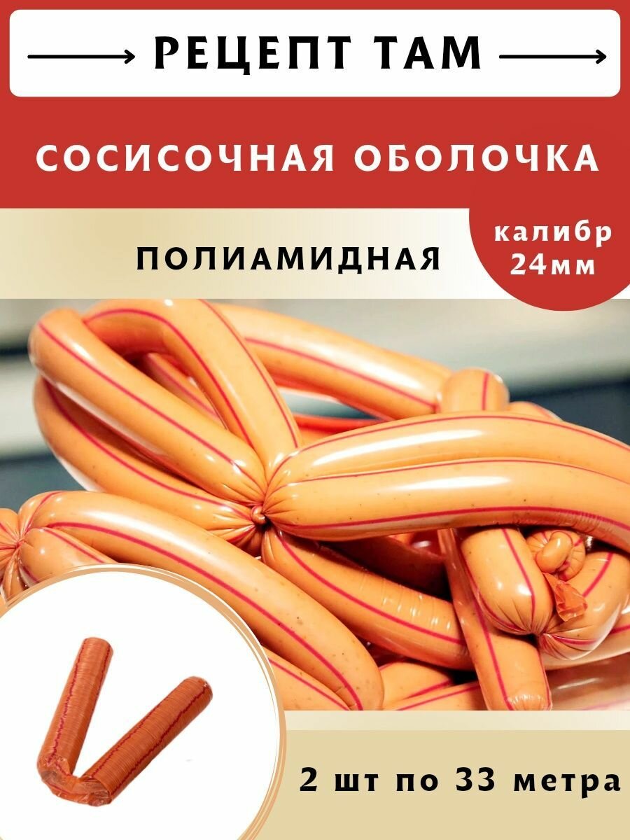 Полиамидная оболочка для изготовления сосисок ,калибр 24 мм, 33 м, 2 шт. Емколбаски интересное: