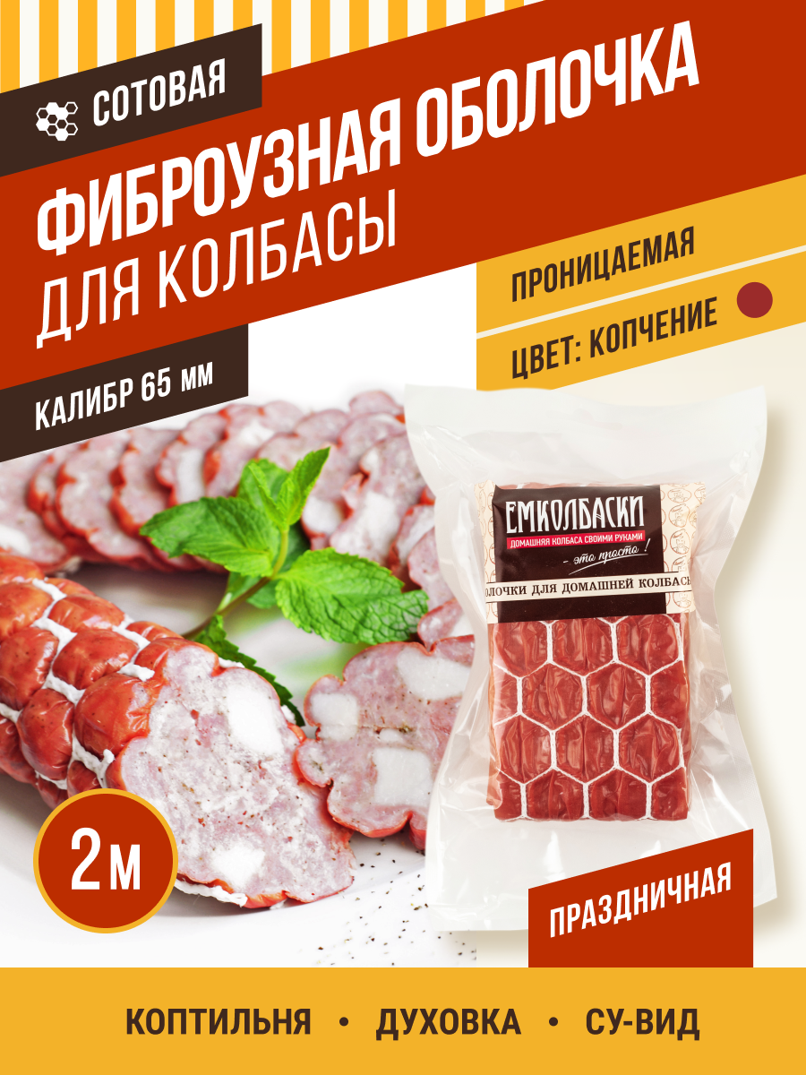 Фиброузная оболочка сотовая 65 мм, 2 м. емколбаски интересное: