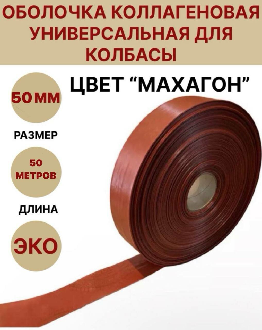 Коллагеновая оболочка цвет "махагон" 50 мм - 50 м интересное: