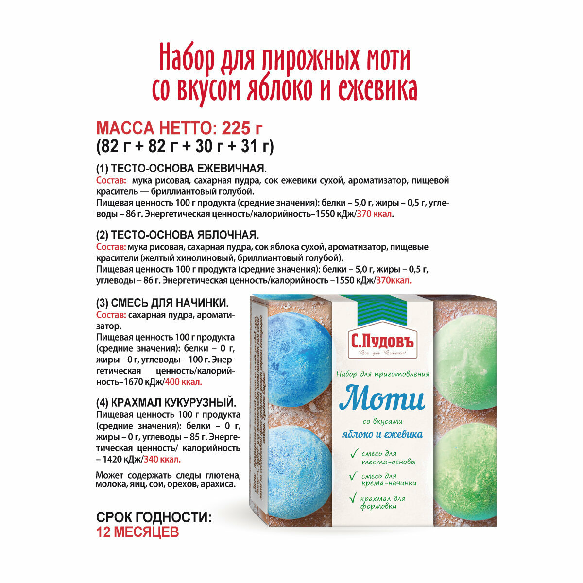 Набор для приготовления пирожных "Моти со вкусом яблоко-ежевика" С.Пудовъ, 225 г интересное: