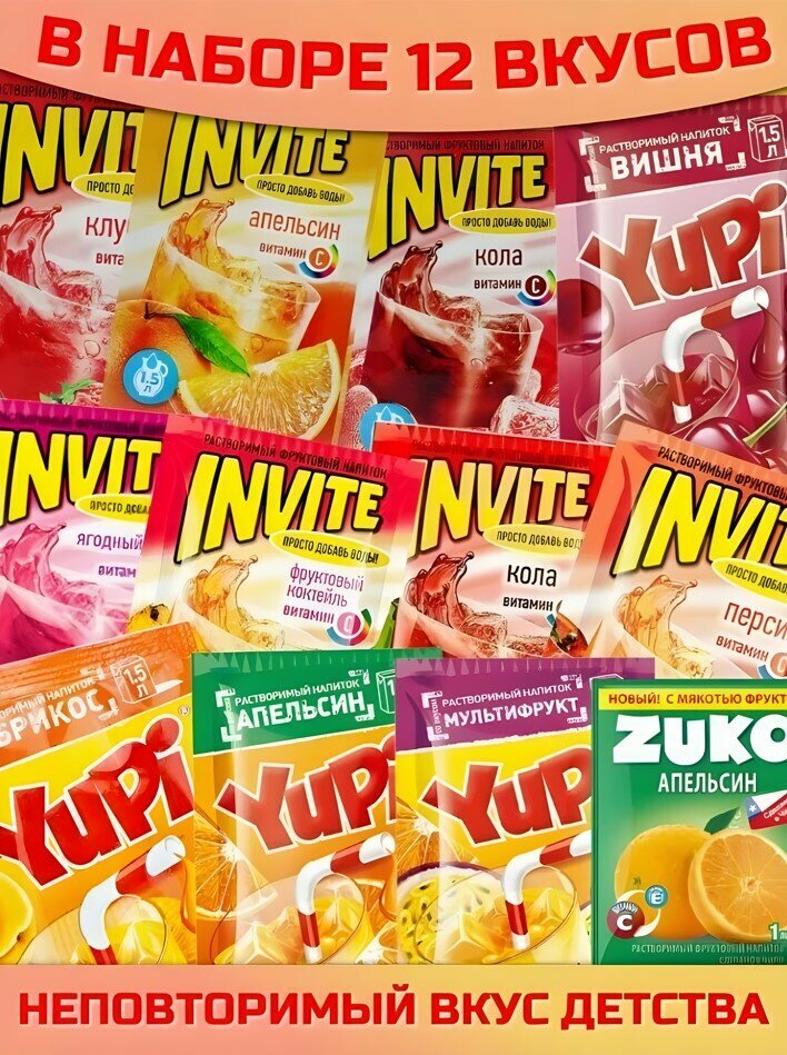 Набор сухих напитков ZUKO YUPI INVITE 12 штук ассорти вкусов интересное: