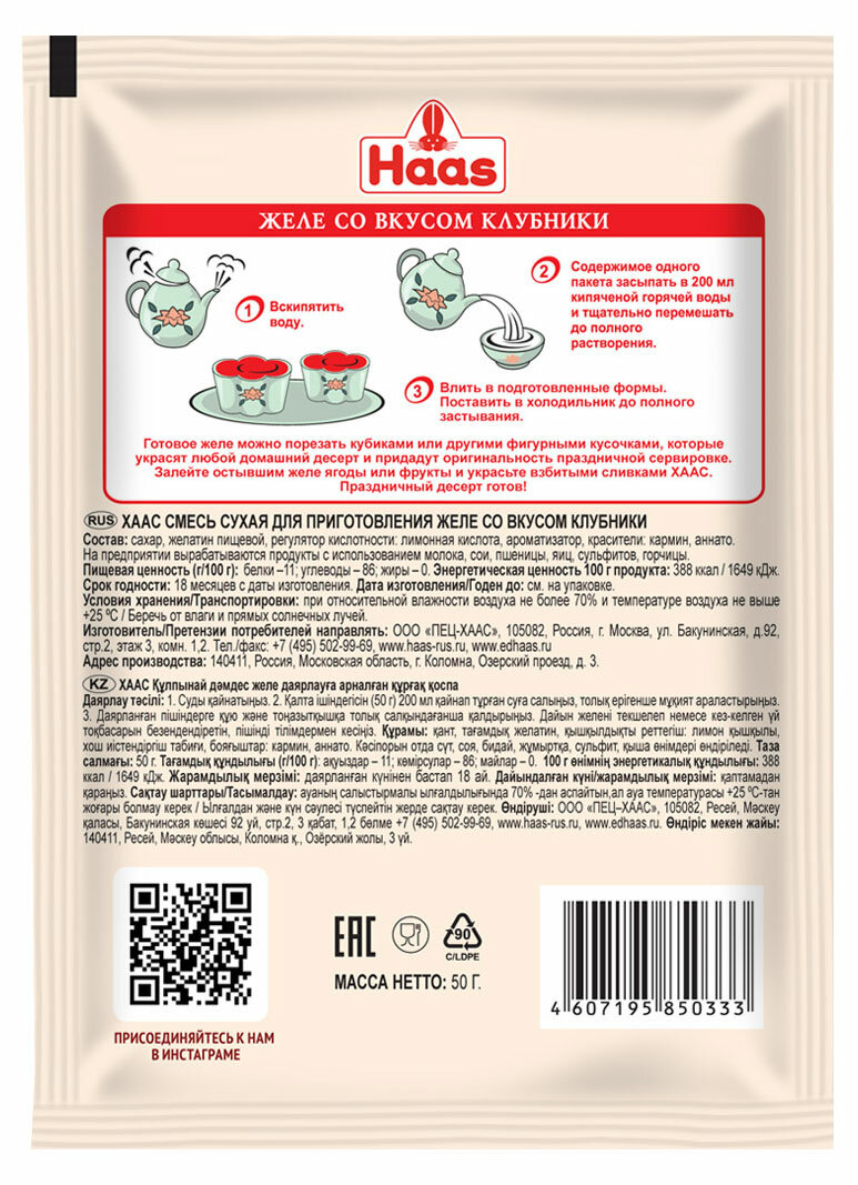 Купить Желе Haas, быстрый десерт со вкусом клубники с витамином С, 50 г