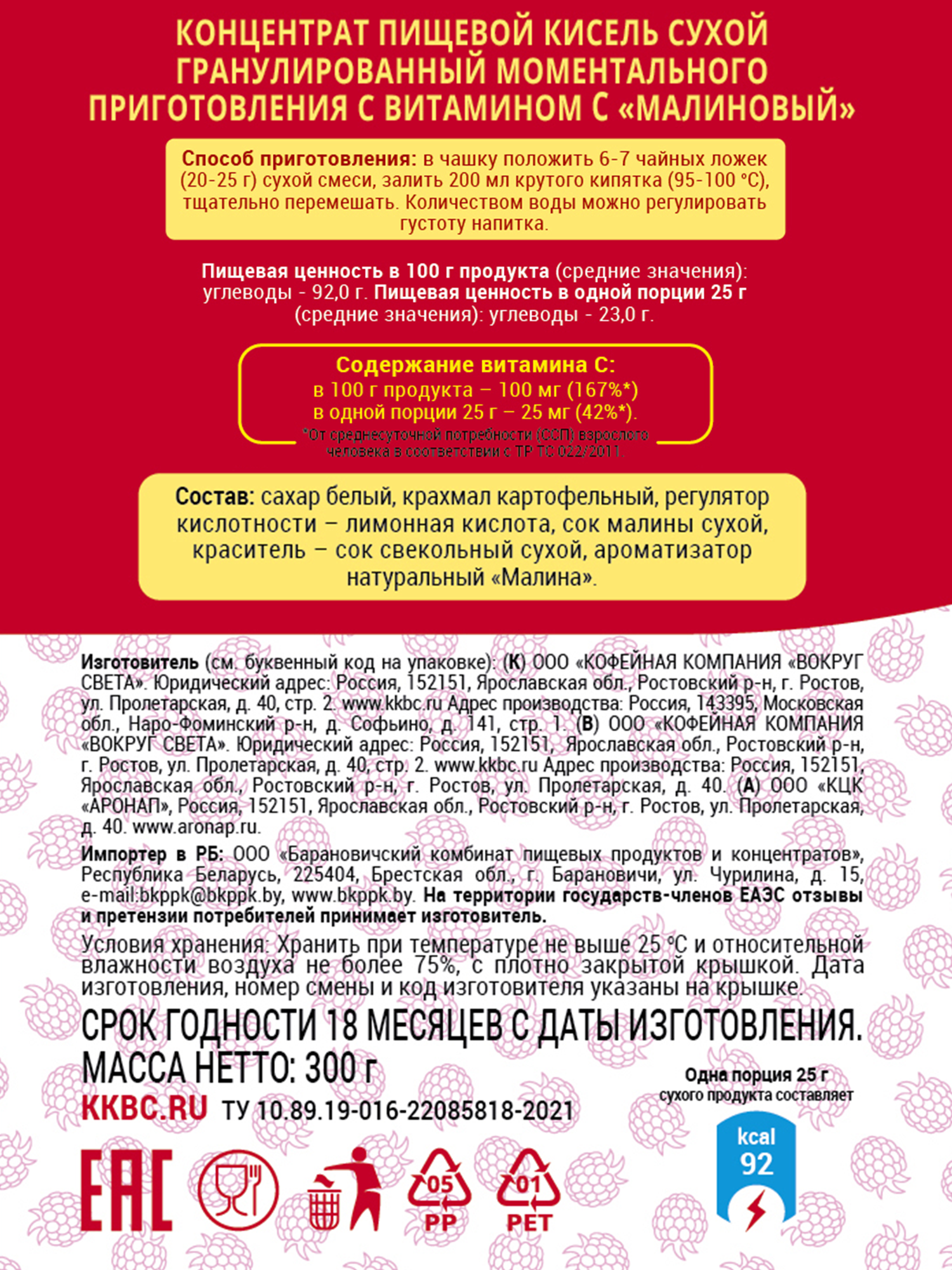 Кисель растворимый гранула с натуральным соком Белый Мишка Малина 300 г интересное: