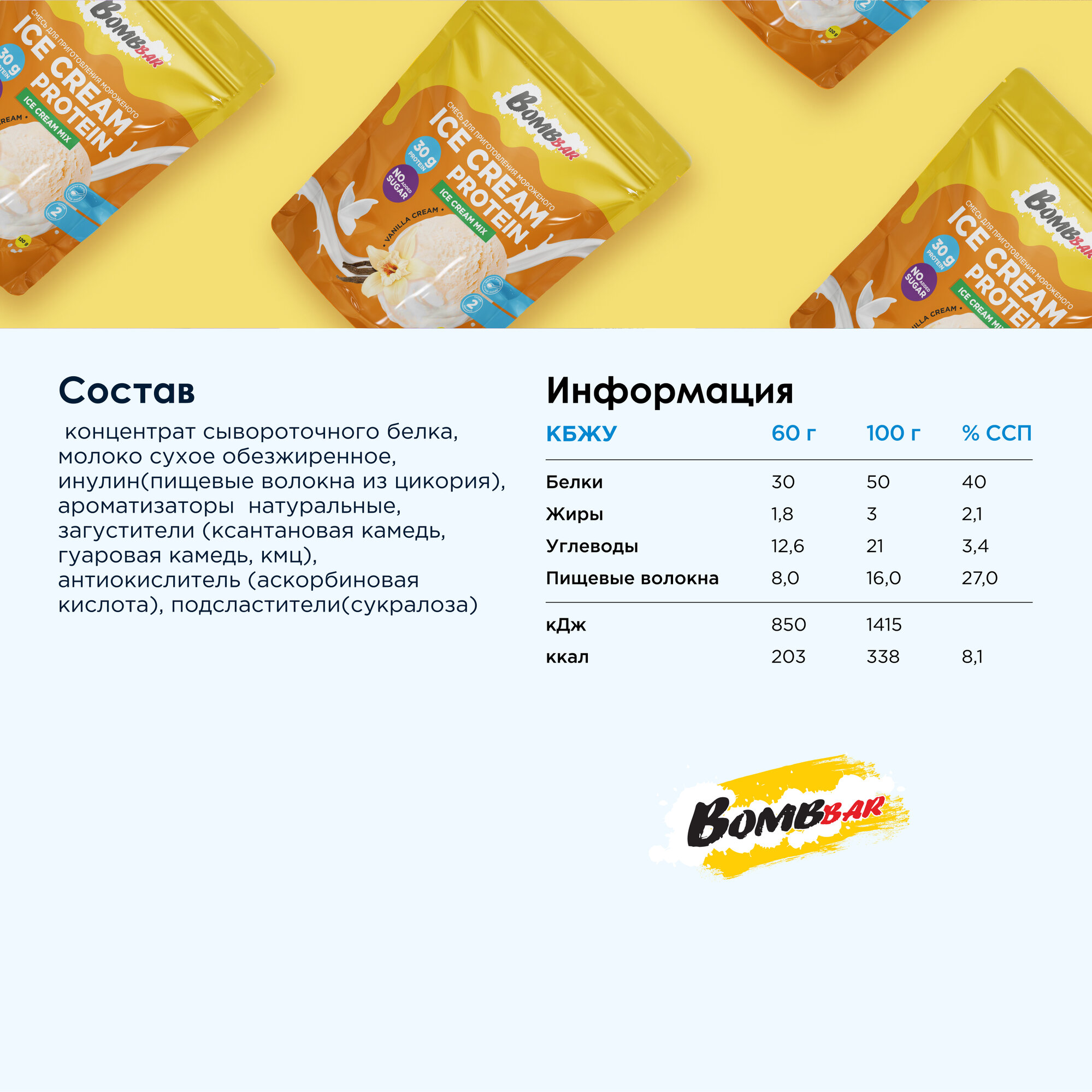 Bombbar Смесь для приготовления протеинового мороженого без сахара "Сливочная ваниль" интересное: