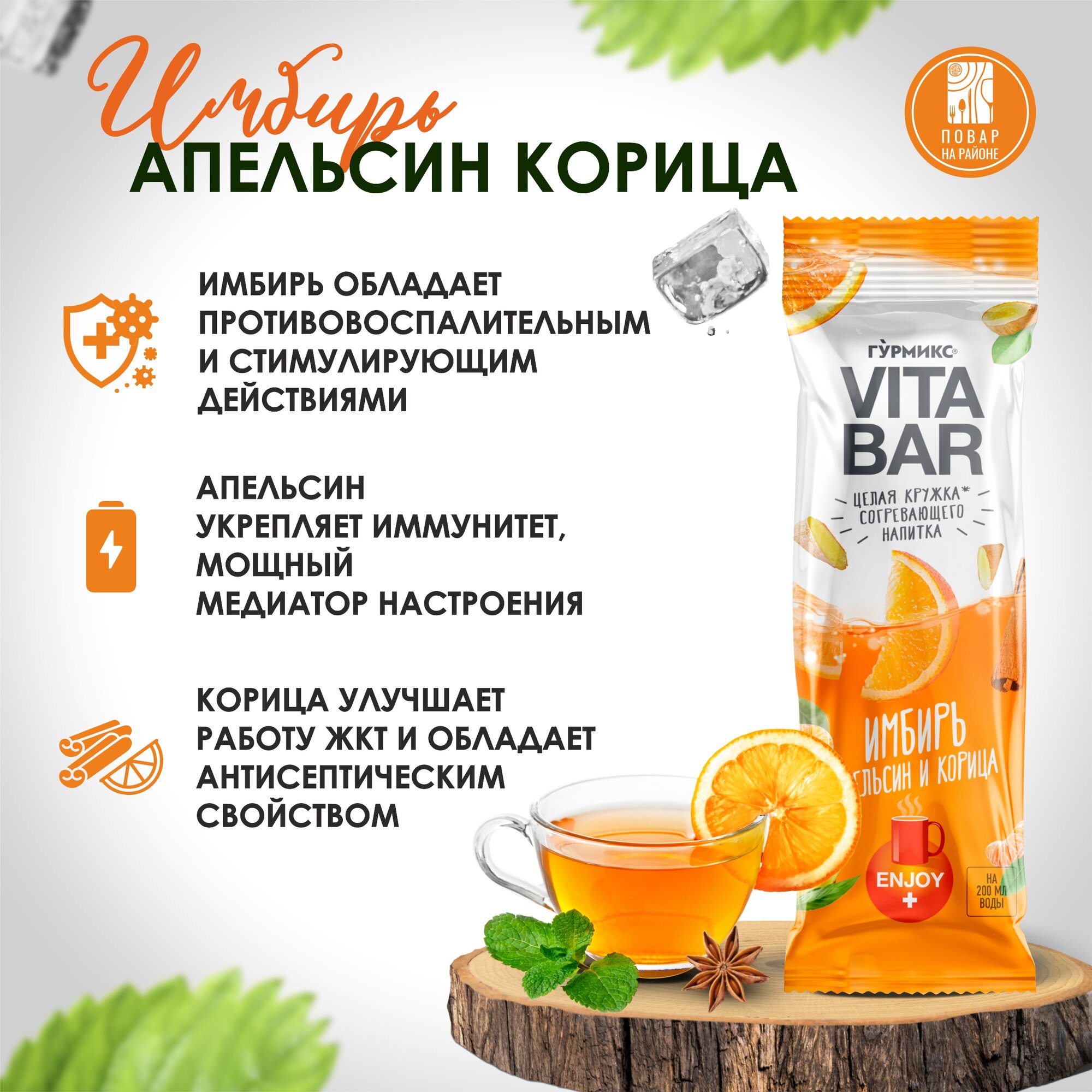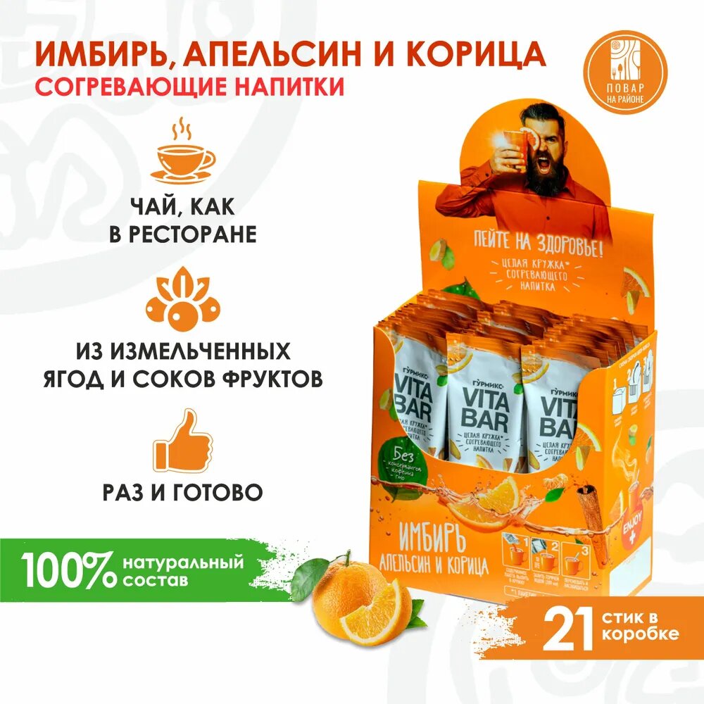 СохранитьСогревающие напитки Гурмикс, VITA BAR апельсин, имбирь, корица, вариант ресторанного чая в удобной упаковке интересное: