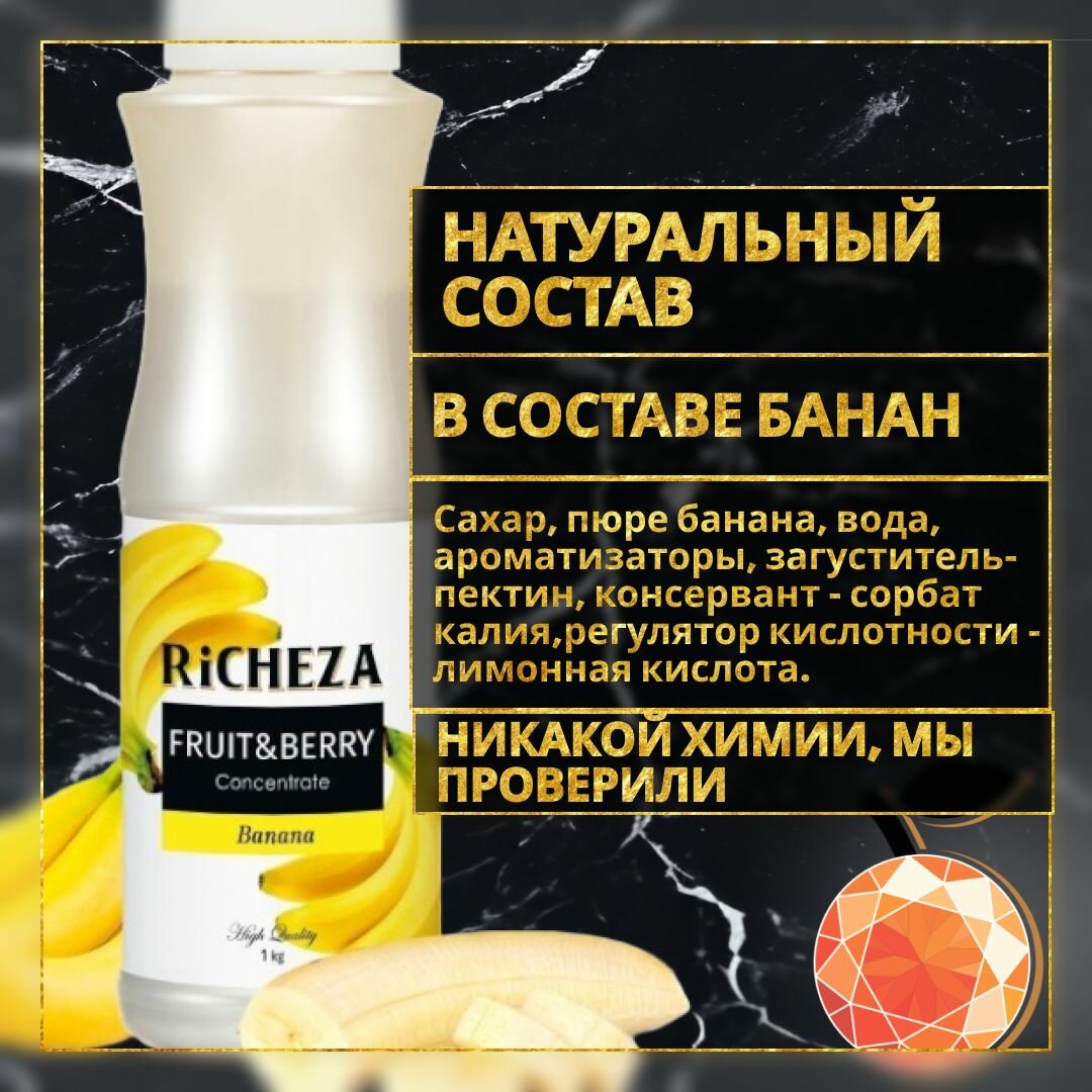 Купить Концентрат Основа для приготовления напитков Richeza Ричеза Банан, натуральный концентрат для чая, коктейля, смузи, лимонада, 1 кг.