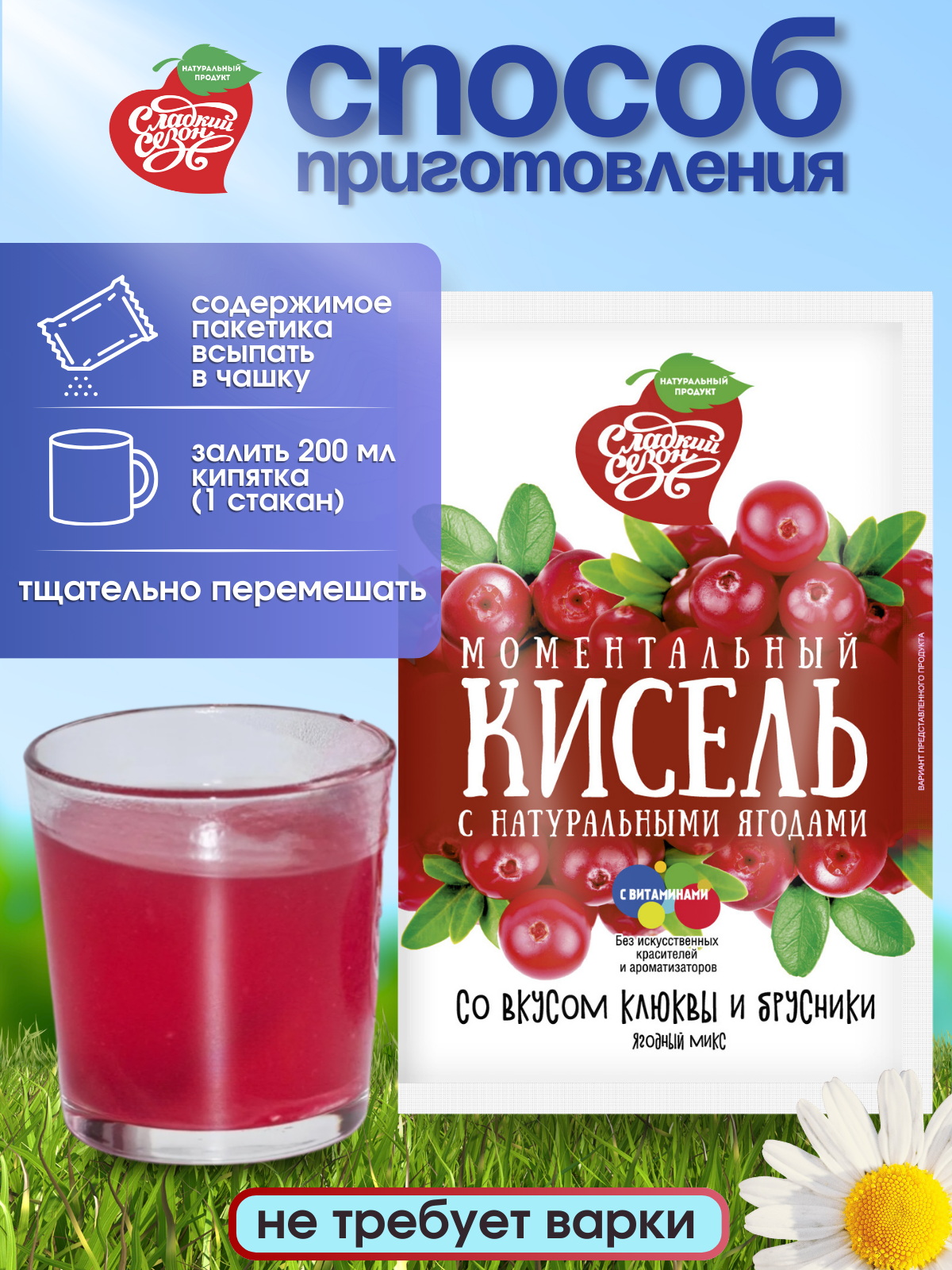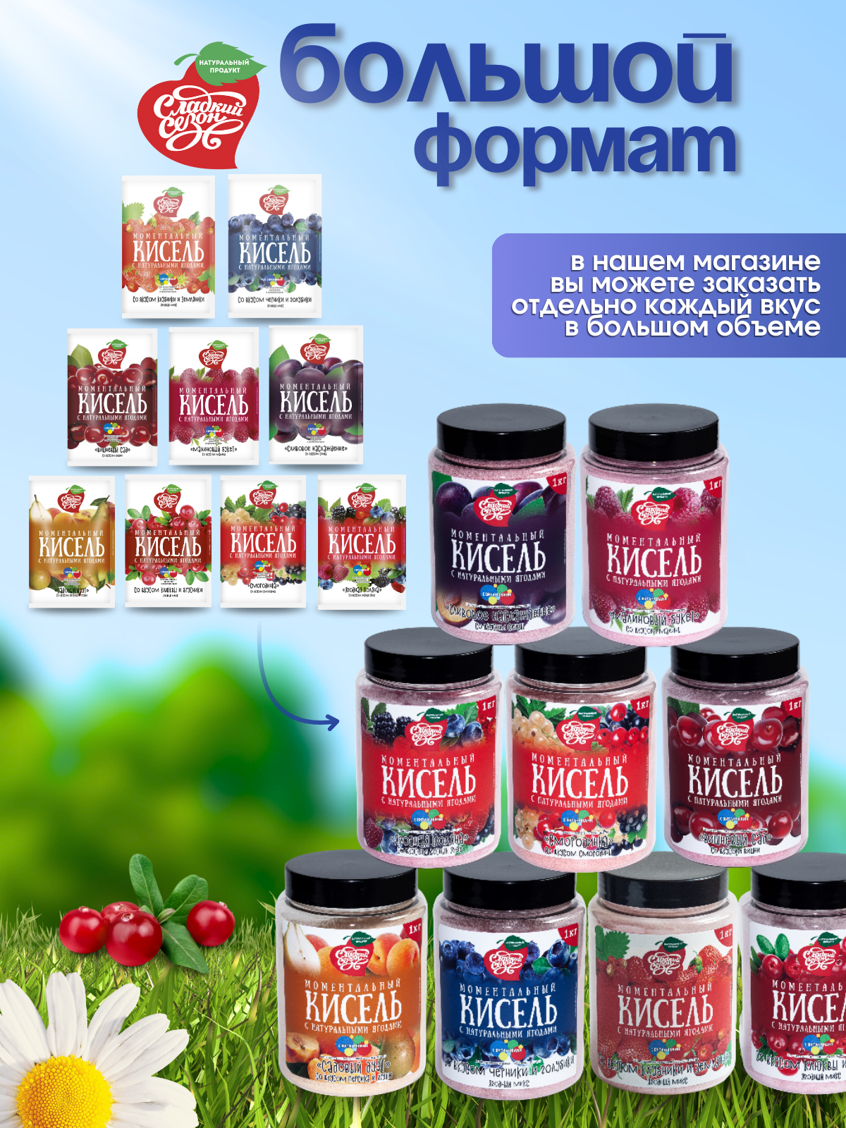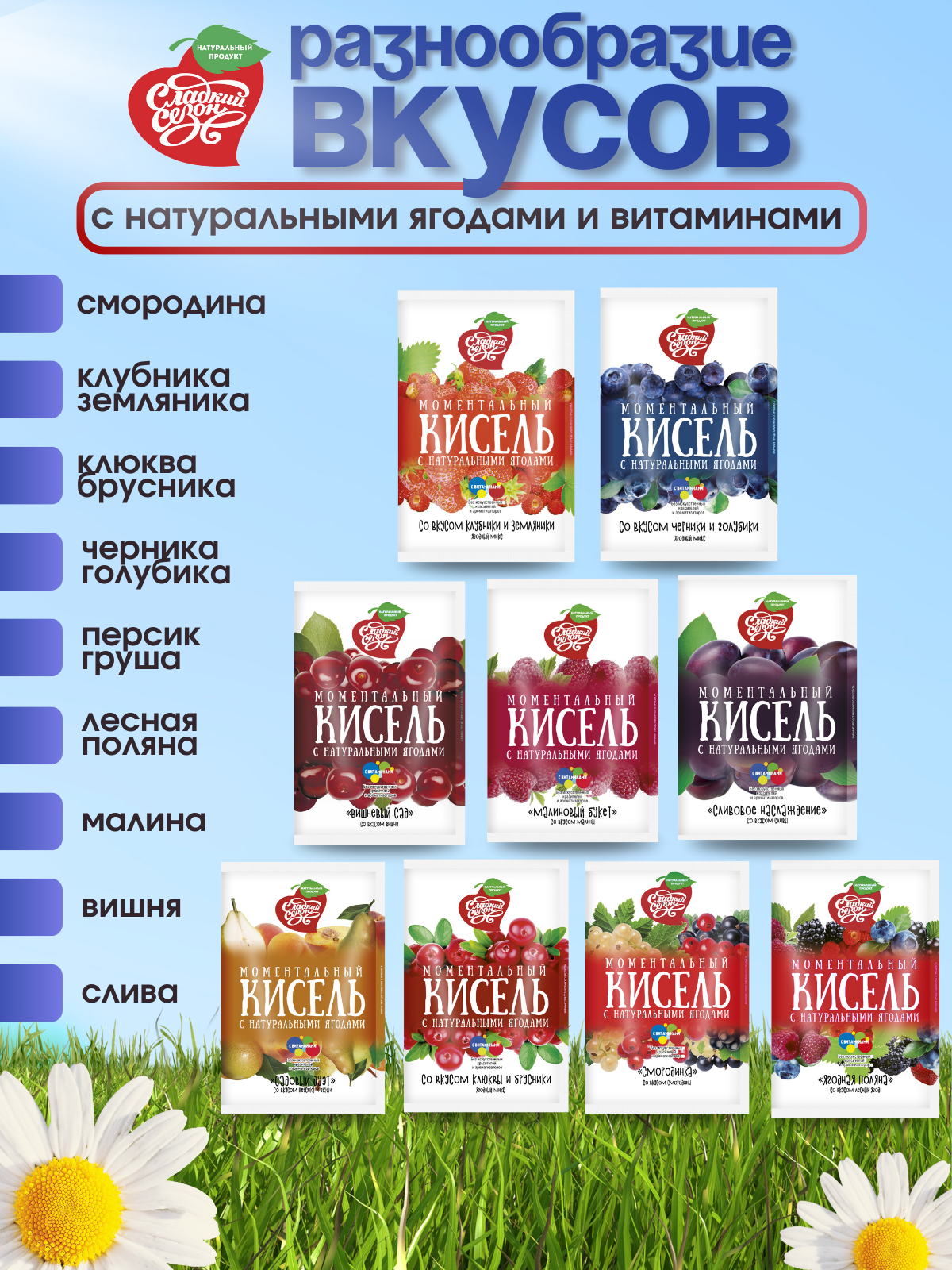 Кисель со вкусом вишни. Быстрорастворимый. Сладкий сезон .6 пакетиков по 30грамм.180 грамм. интересное: