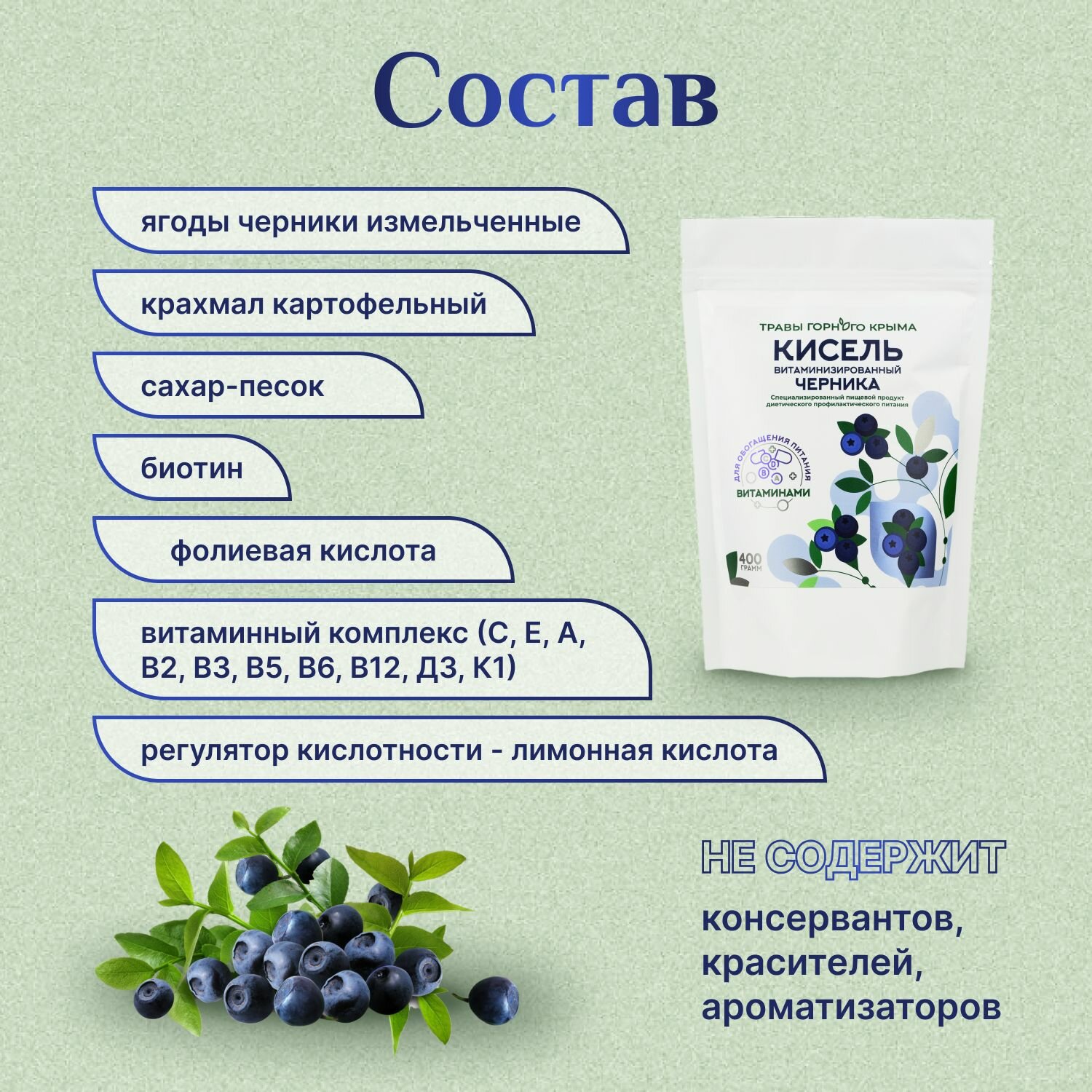 Купить Кисель Черника витаминизированный Травы горного Крыма, 400 гр