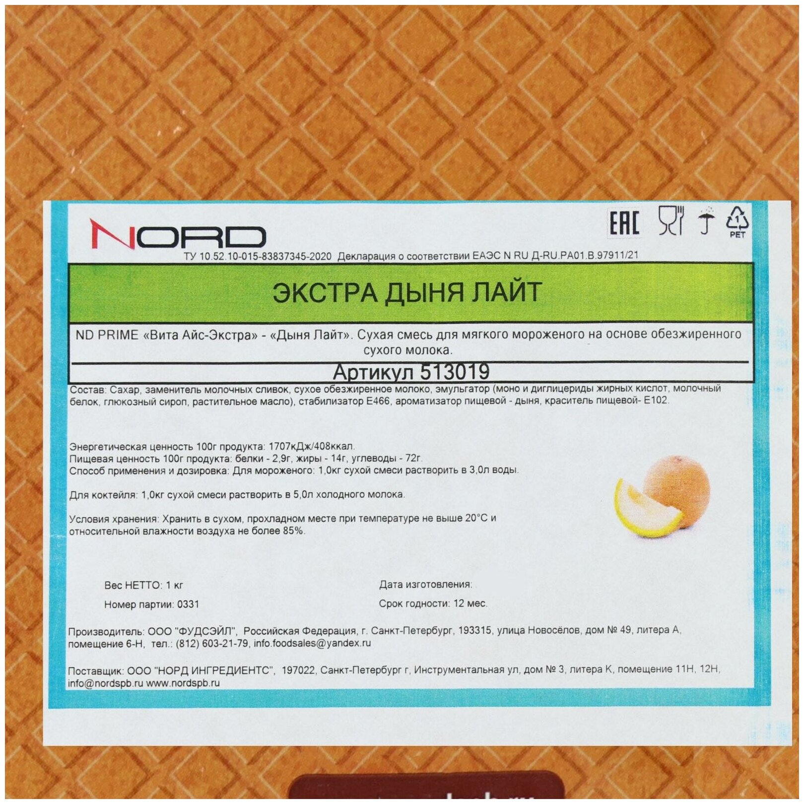Купить Сухая смесь для мягкого мороженого «Вита-Айс лайт» дыня, 1 кг