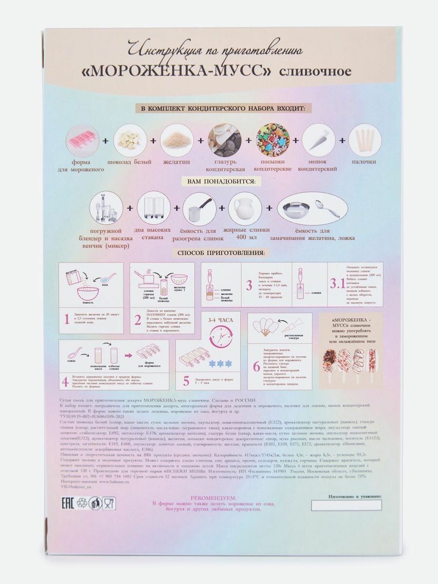 Купить Смесь для сливочного мороженого + форма