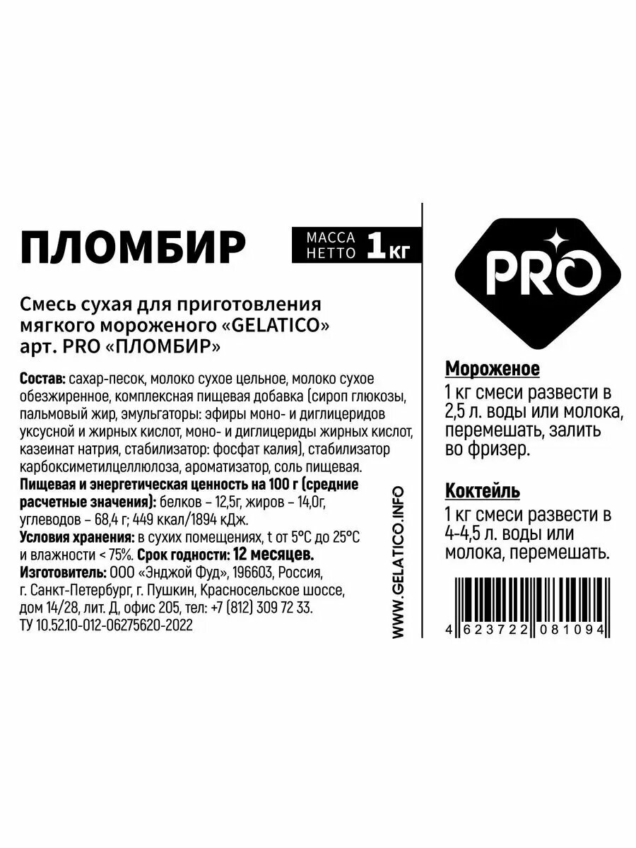 Смесь для мороженого GELATICO PRO/ Пломбир, 1 кг интересное: