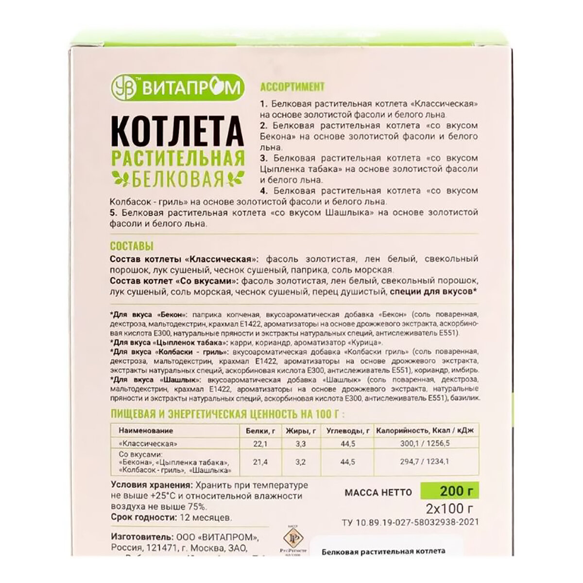 | Не содержит | ГМО / ароматизаторы |