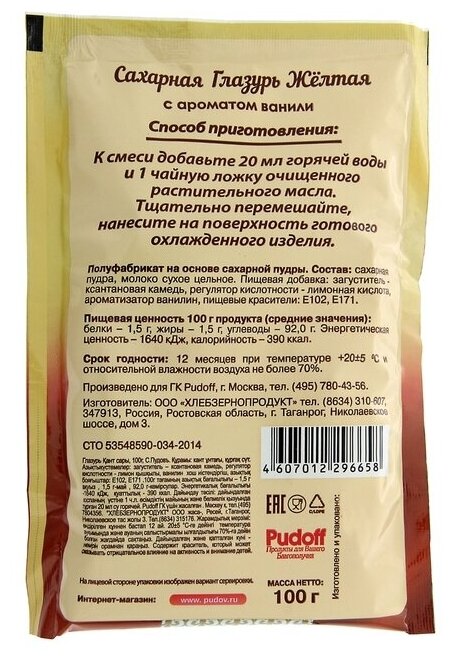 Ниже Вы можете прочитать отзывы на Сахарная глазурь С. Пудовъ, жёлтая, 100 г, ознакомится с подробными характеристиками, посмотреть интересные обзоры и фотографии на Сахарная глазурь С. Пудовъ, жёлтая, 100 г.