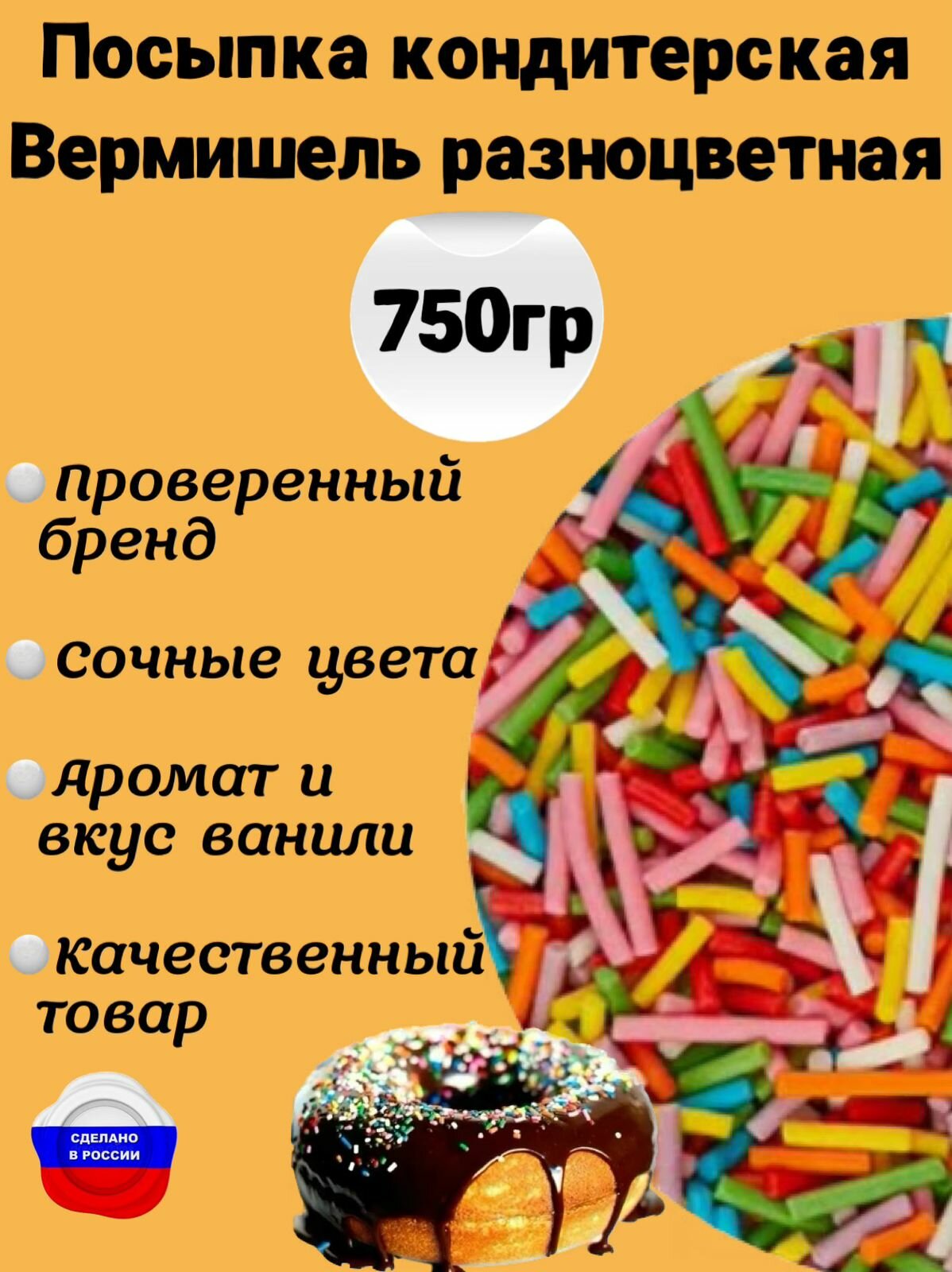 Купить Посыпка кондитерская Вермишель разноцветная 750гр, украшение и декор для торта, капкейков, выпечки, куличей, кексов, мороженого