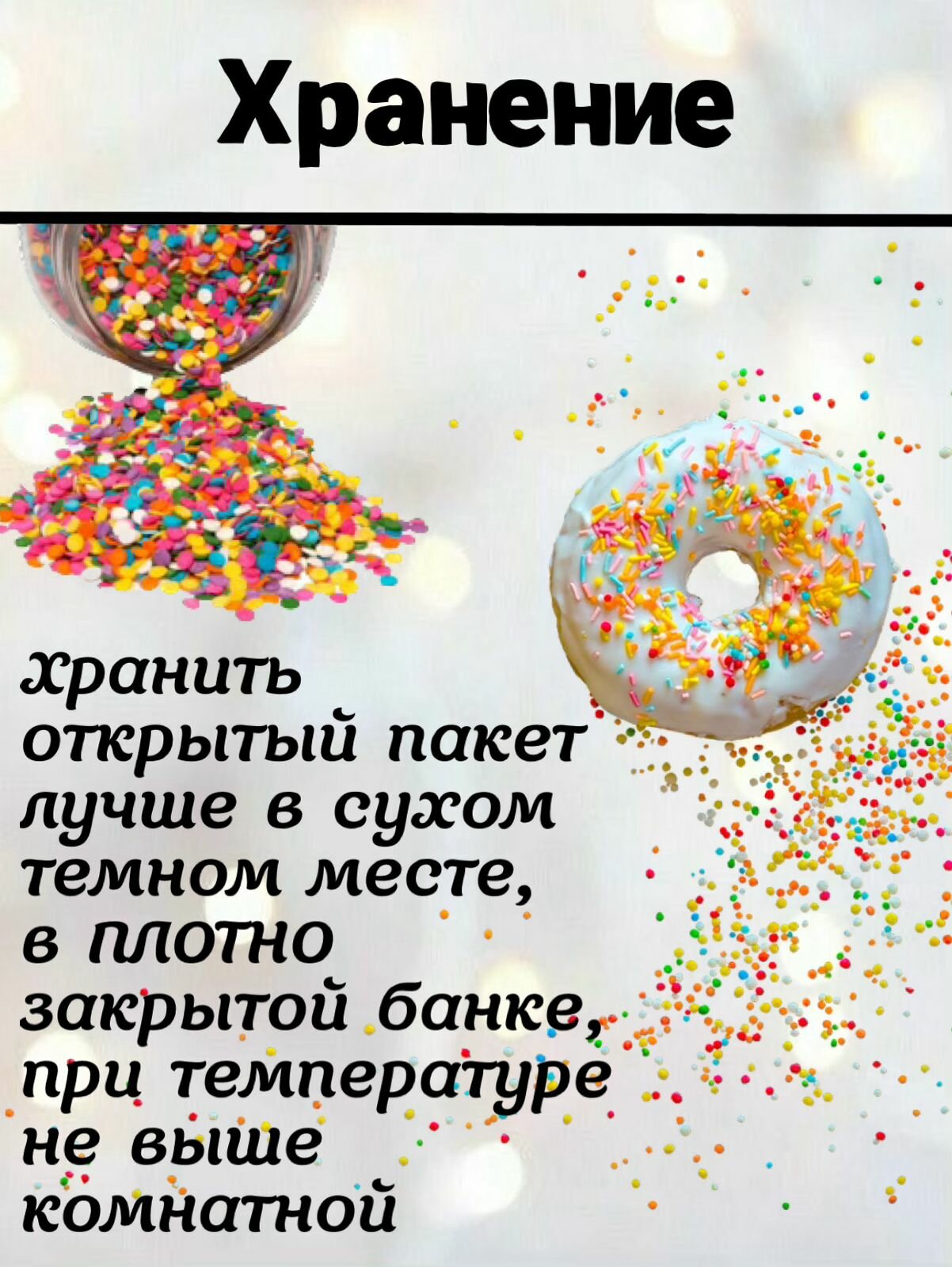 | Форма выпуска | вермишель / звездочки / конфетти / сердечки / фигурная / цветочки / шарики |