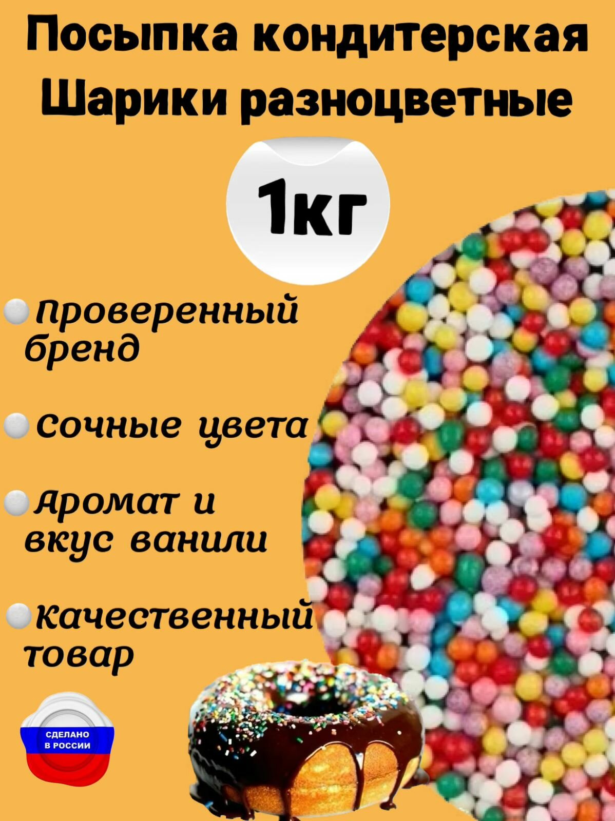 Купить Посыпка кондитерская Шарики разноцветные 1000гр, украшение и декор для торта, капкейков, выпечки, куличей, кексов, мороженого