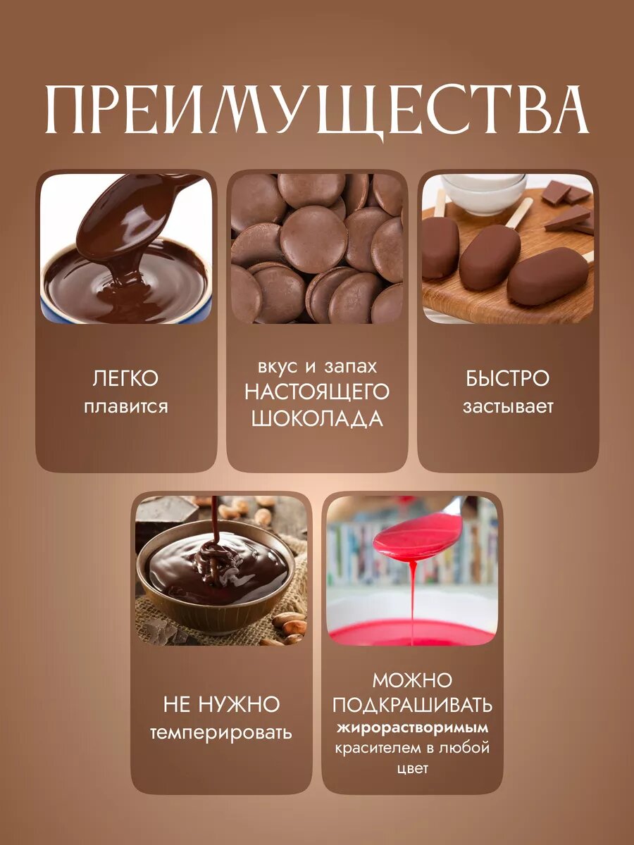 Шоколадная кондитерская глазурь премиум качества в каплях, глазурь для профессиональных кондитеров и любителей 500 г. коричневая