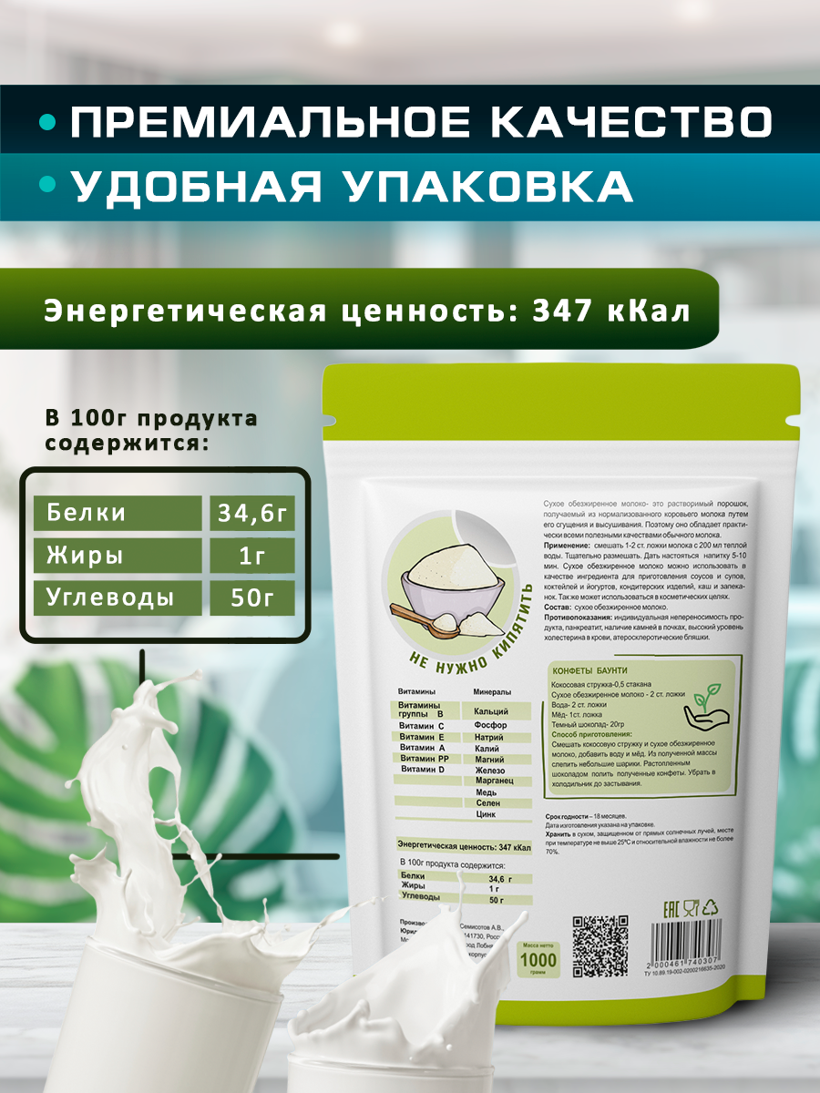 Сухое Обезжиренное молоко , 1000 гр интересное: