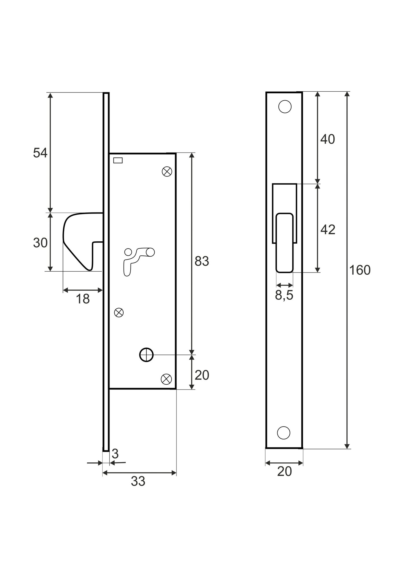 Замок врезной магнитный 25М-85 мм, чёрный Нора-М 18525