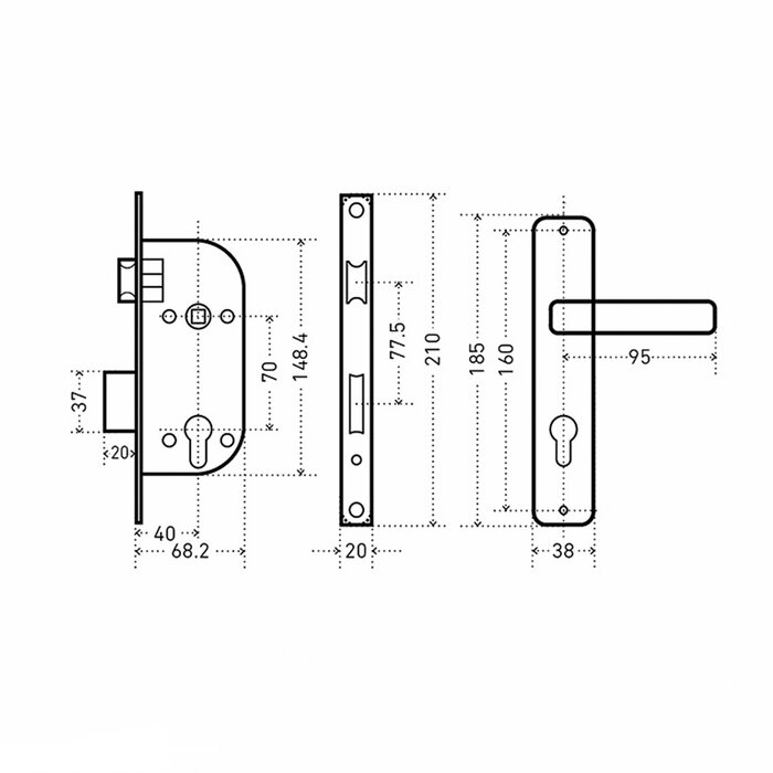Замок врезной MARLOK ЗВ-7.02 ОР ДКД, автомат, в комплекте с ручками, правый