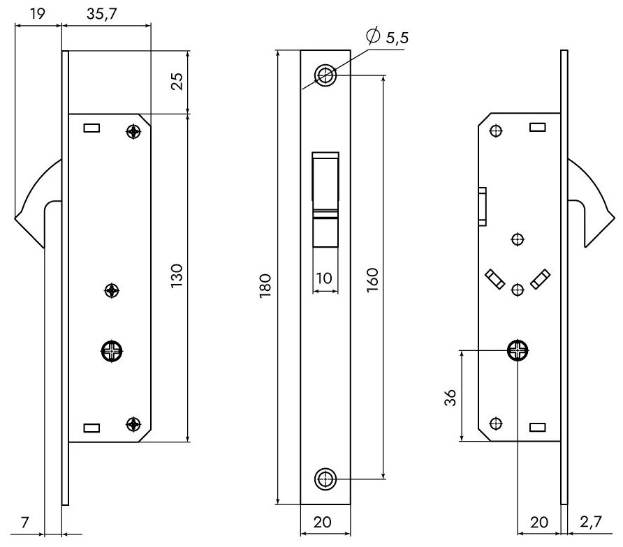 Замок врезной узкопрофильный для откатных ворот и калиток. LR-201F (20 мм) СP-хром, 3 кл.