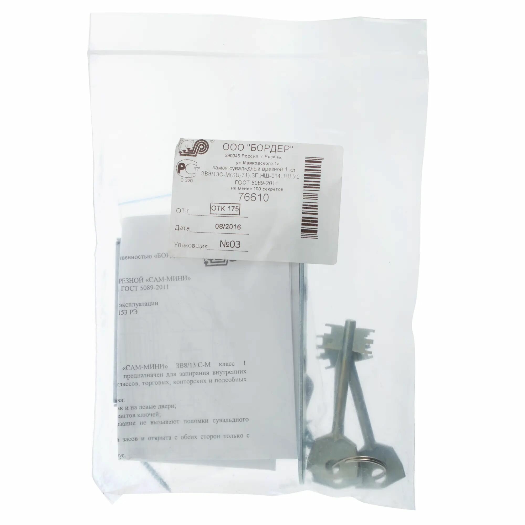 | Дополнительная информация | Замок врезной Просам 76610-ЗВ8-4С/13-САМ-Мини, цвет сталь |