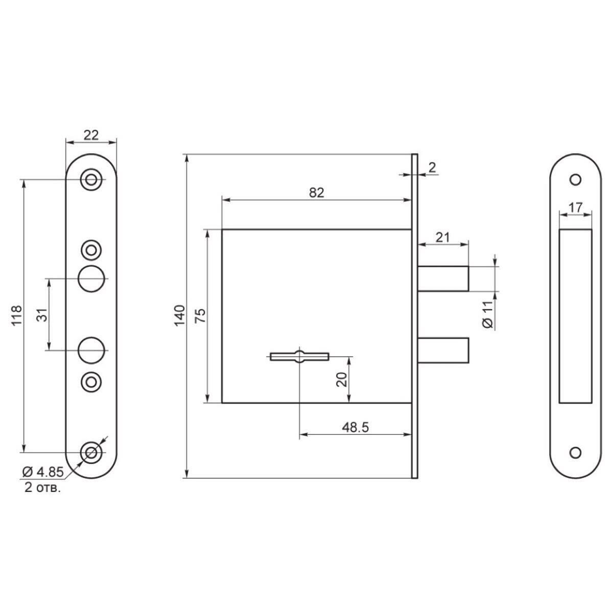Замок врезной магнитный 25М-85 мм, чёрный Нора-М 18525