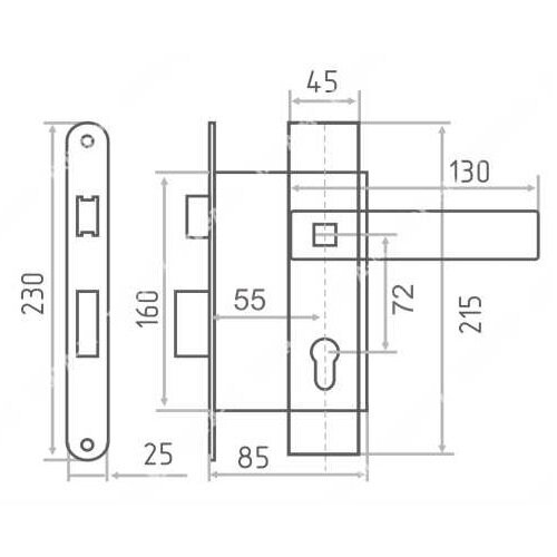Замок врезной магнитный 25М-85 мм, чёрный Нора-М 18525