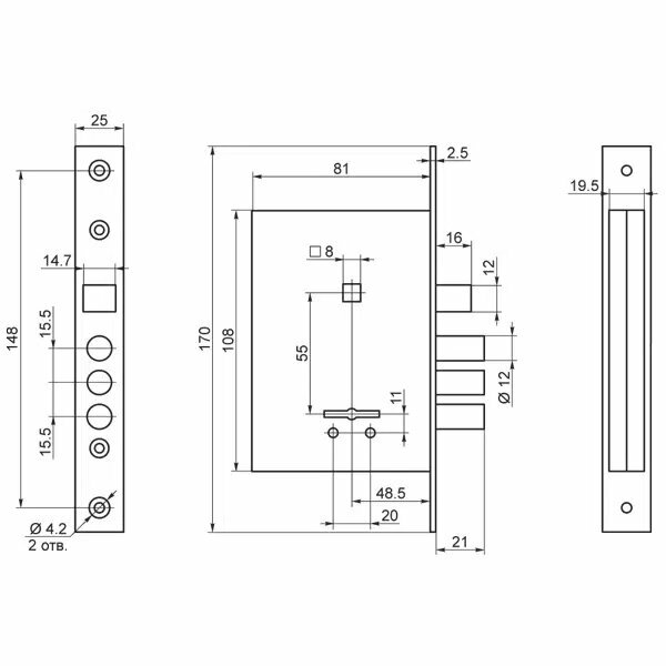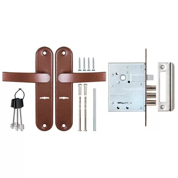 Замок врезной сувальдный с защёлкой в комплекте с ручкой Сам ЗВ9-8/13 (медный антик), 3 кл. /84301/ интересное: