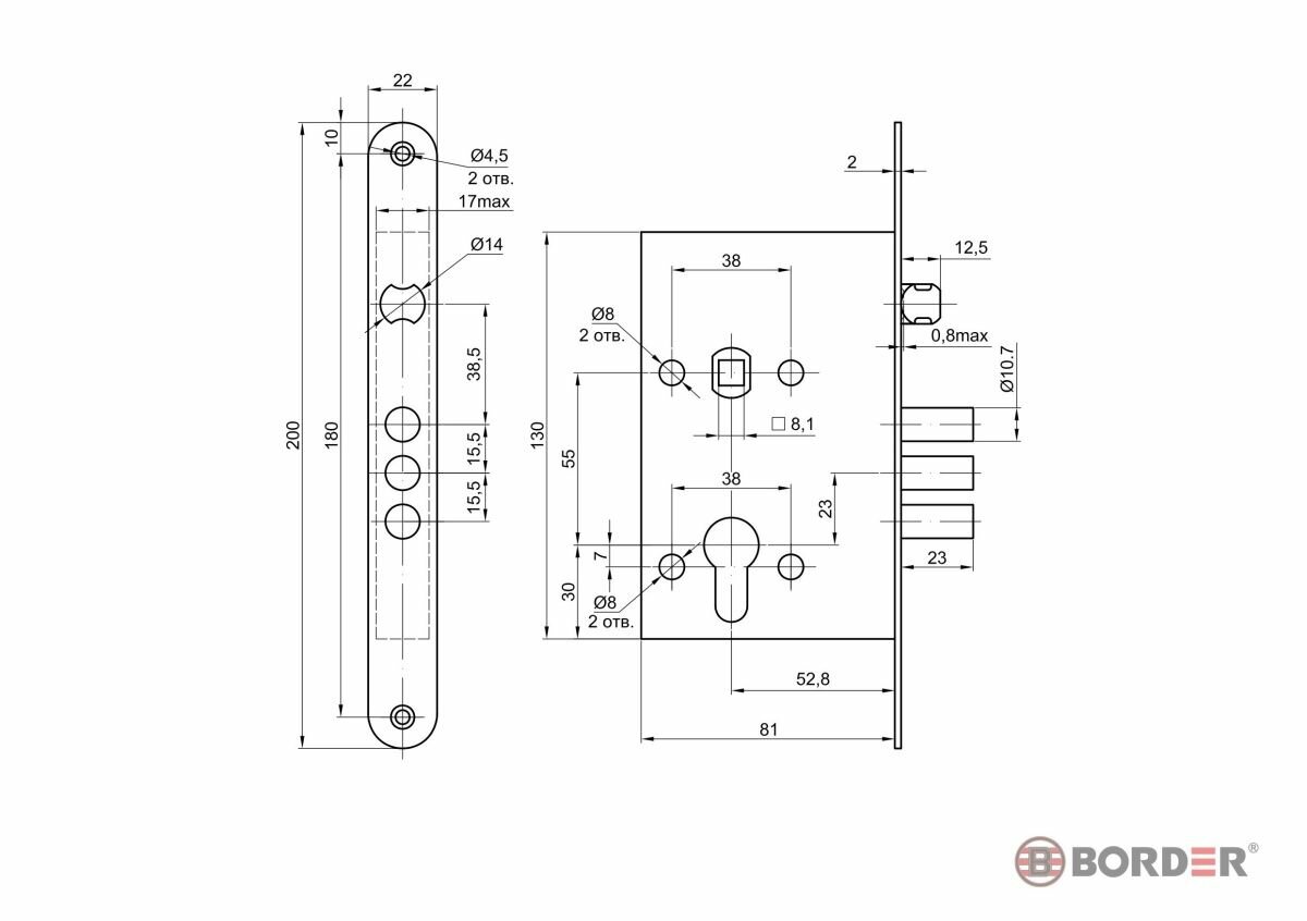 Замок врезной ЗВ4-31/55. СП5. РФ76-002/80.60-Z. Ш. У4 сварной 78928