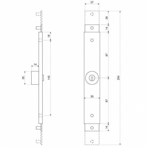 Замок врезной магнитный 25М-85 мм, чёрный Нора-М 18525