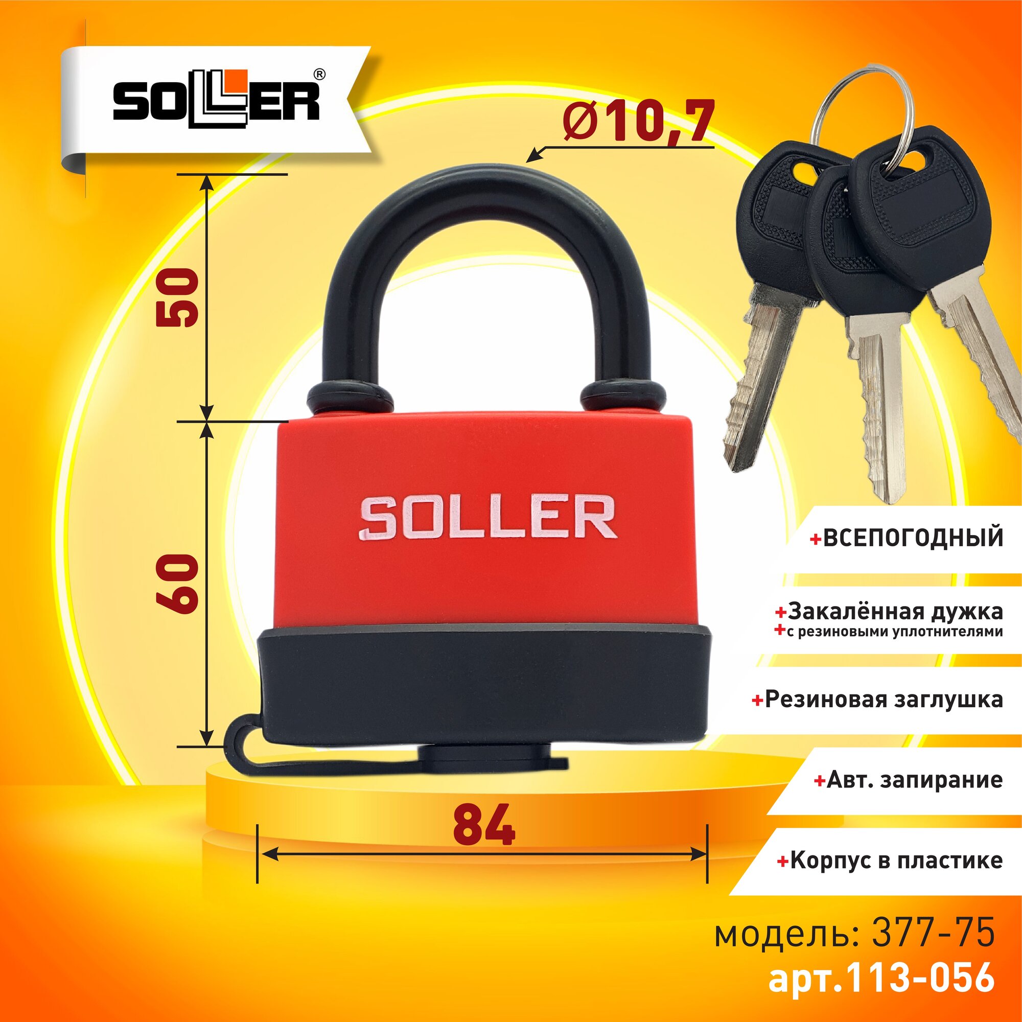 Замок навесной всепогодный SOLLER 377-75 (75мм) интересное: