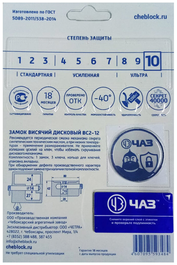 Навесной замок ЧАЗ ВС2-12 стальной, из серии "Ультра защита", производства Россия, 3 ключа в комплекте интересное: