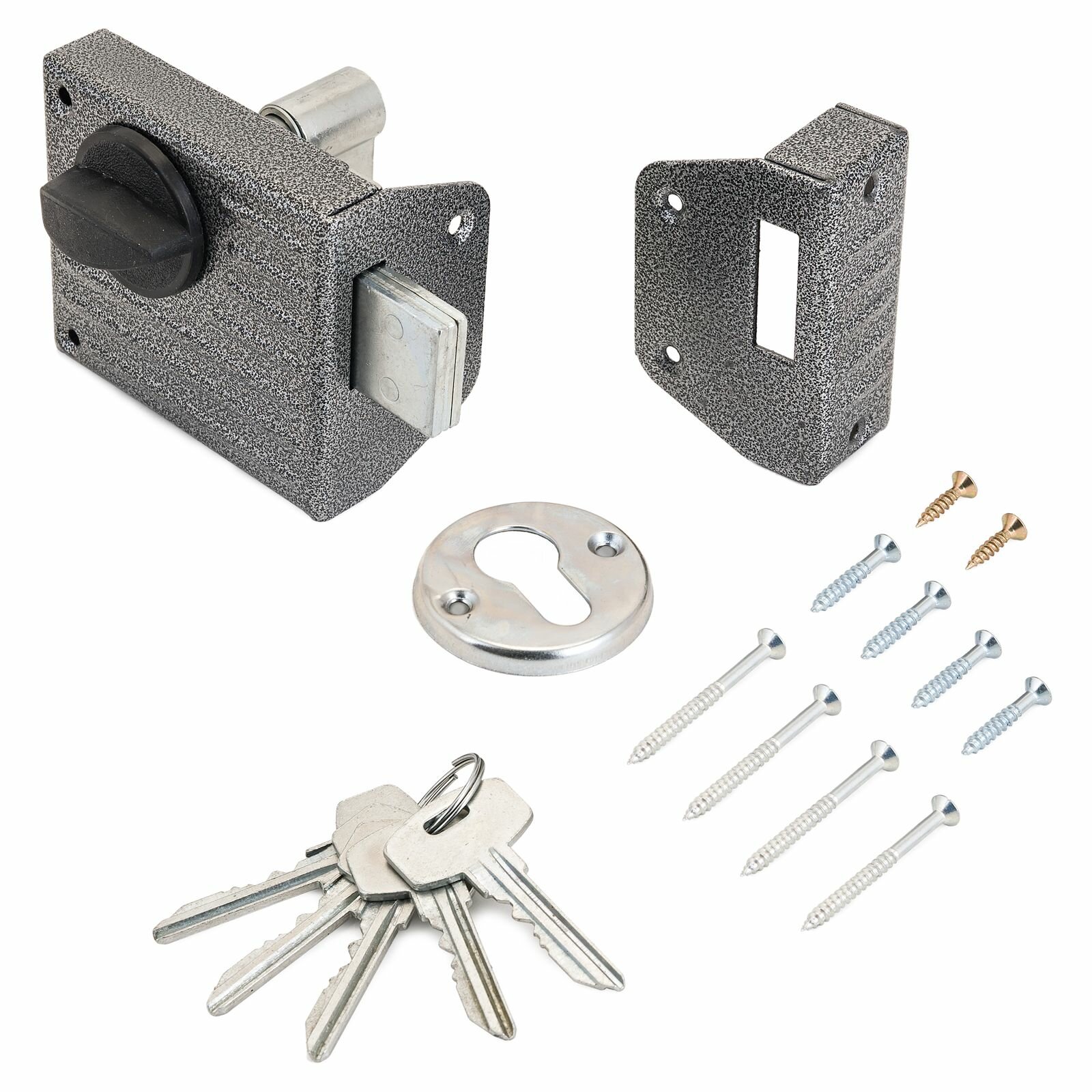 | Подробная комплектация | Замок накладной, 4 ключа, запорная планка, накладка |