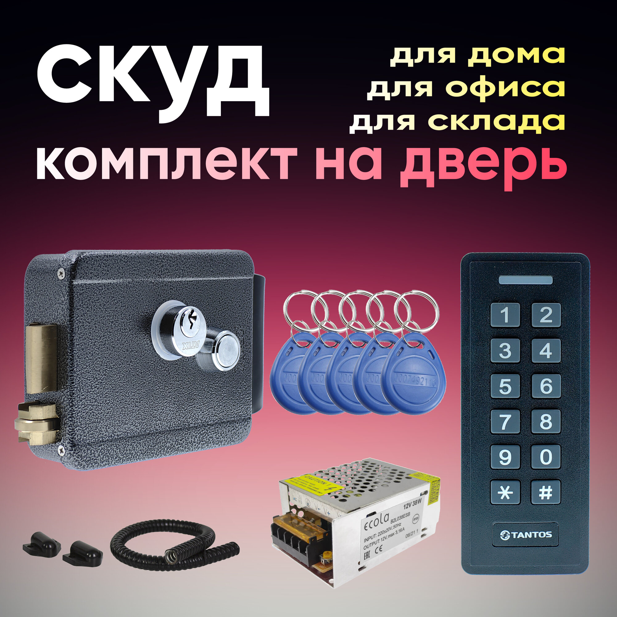 Комплект СКУД для калитки. Накладной электромеханический замок на калитку, дверь. Замок серый крашенная сталь интересное: