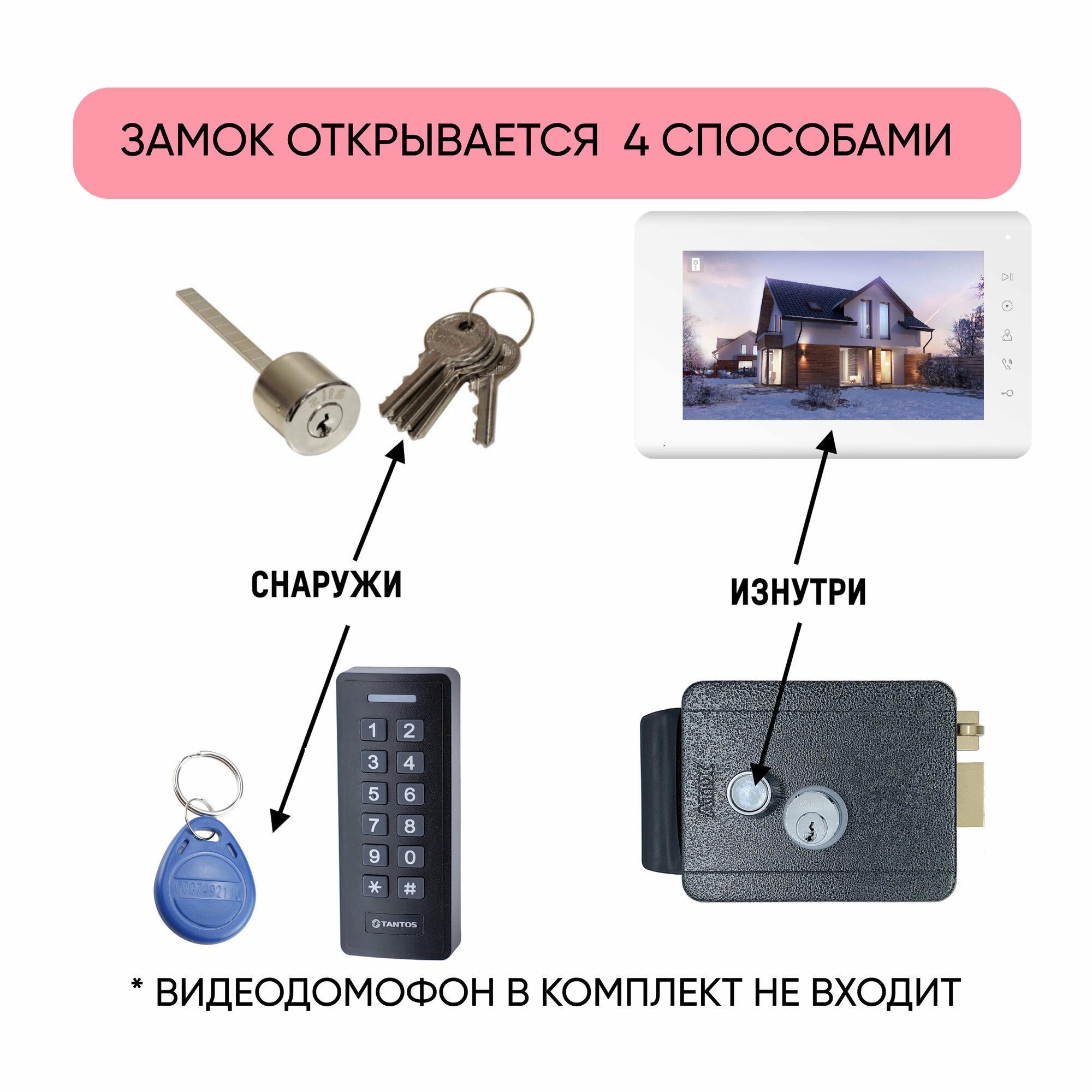 | Способ отпирания снаружи | карта, ключ, код |